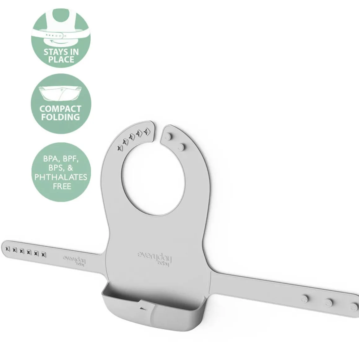 Everyday Baby Silicone Bib has everything a parent can ask for. The food pocket and side walls make sure there will be no spilled food on the floor, and with the two-way fastened belt it stays on even if your baby moves a lot. But that isn´t all. The bib is also adjustable in size and can be folded up very small so it barely takes any place in your bag – because smart design makes a different.