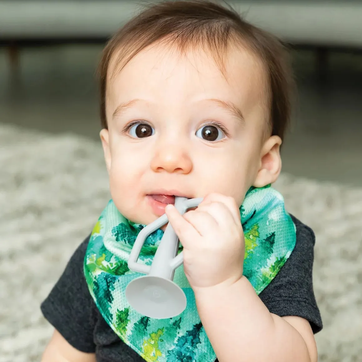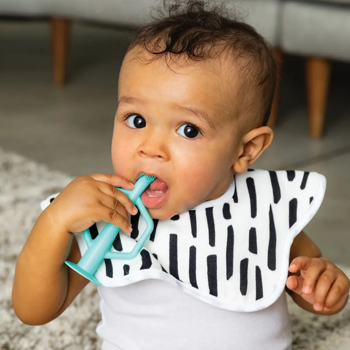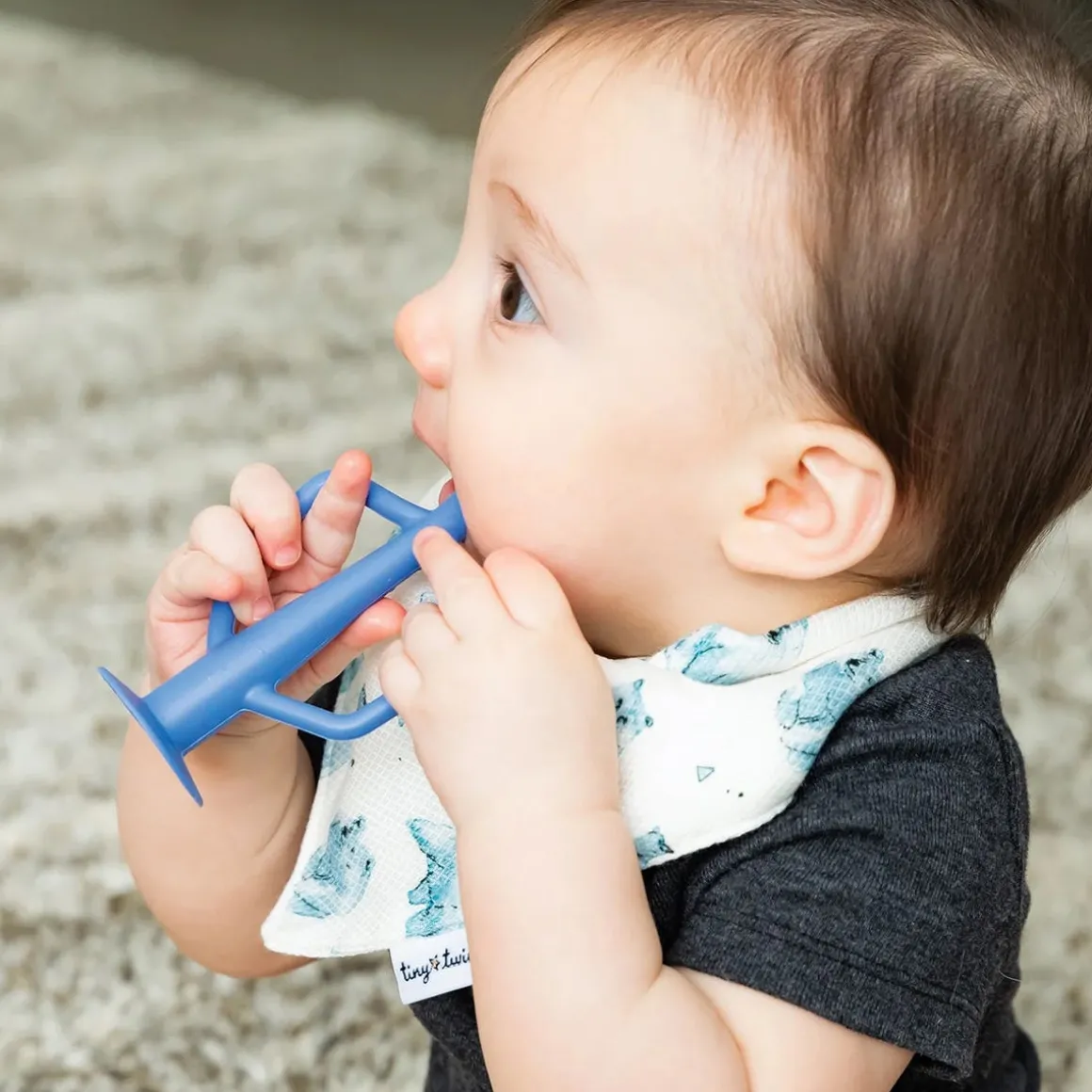 Tiny Twinkle’s Silicone Training Toothbrush 2-Pack is the perfect way to encourage early dental hygiene! Made from 100% food grade silicone, the Training Toothbrush is both durable and soft on baby’s gums. Featuring multiple textures to massage and stimulate baby’s gums, the toothbrush also has soft and gentle bristles to help clean new baby teeth. Easy to grip handles make using the toothbrushes simple for little ones. Suction base keeps the toothbrush upright and away from germs. Dishwasher and freezer safe. For ages 6 months and up.