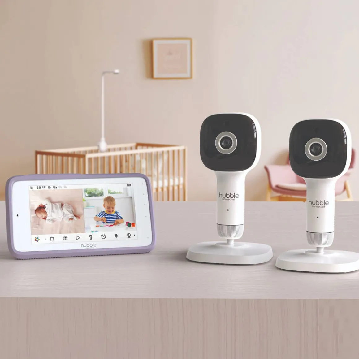 Introducing the Hubble Connected SkyVision AI Pro Twin Smart Baby Monitor, the ultimate solution for parents seeking exceptional safety, convenience, and entertainment for their little ones. With two baby cameras, this advanced monitoring system ensures comprehensive coverage and complete peace of mind.