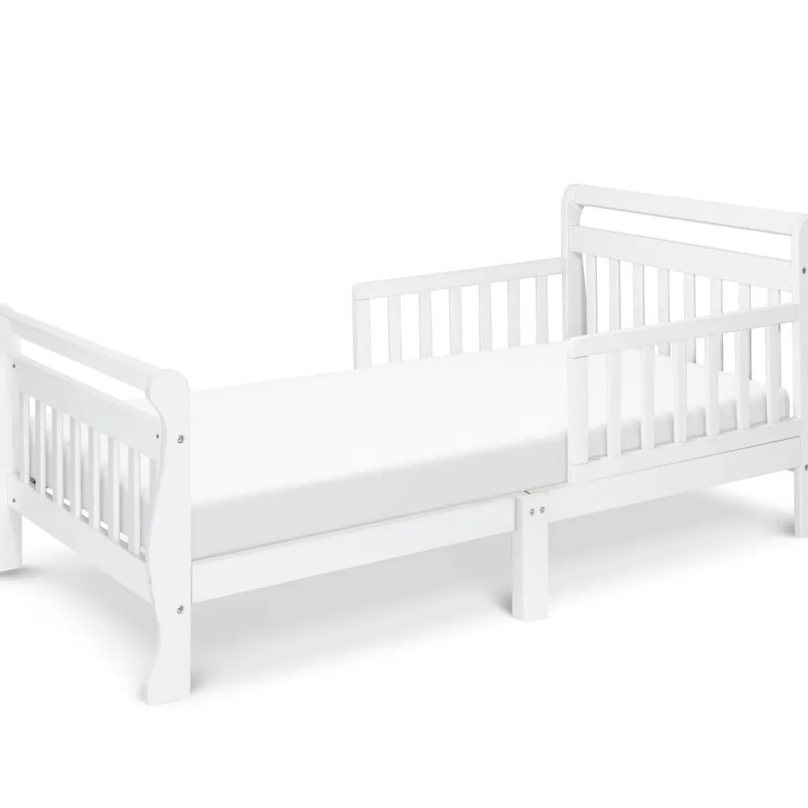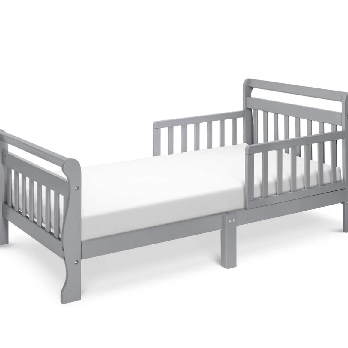 The DaVinci Sleigh Toddler Bed combines the charm and strength of a sleigh-style design with fun and playful details. Offering more than just safety, this toddler bed is paired with a soft rounded headboard and beautifully molded feet that creates beautiful clean lines. Two sturdy side rails help prevent falls and provides added safety.