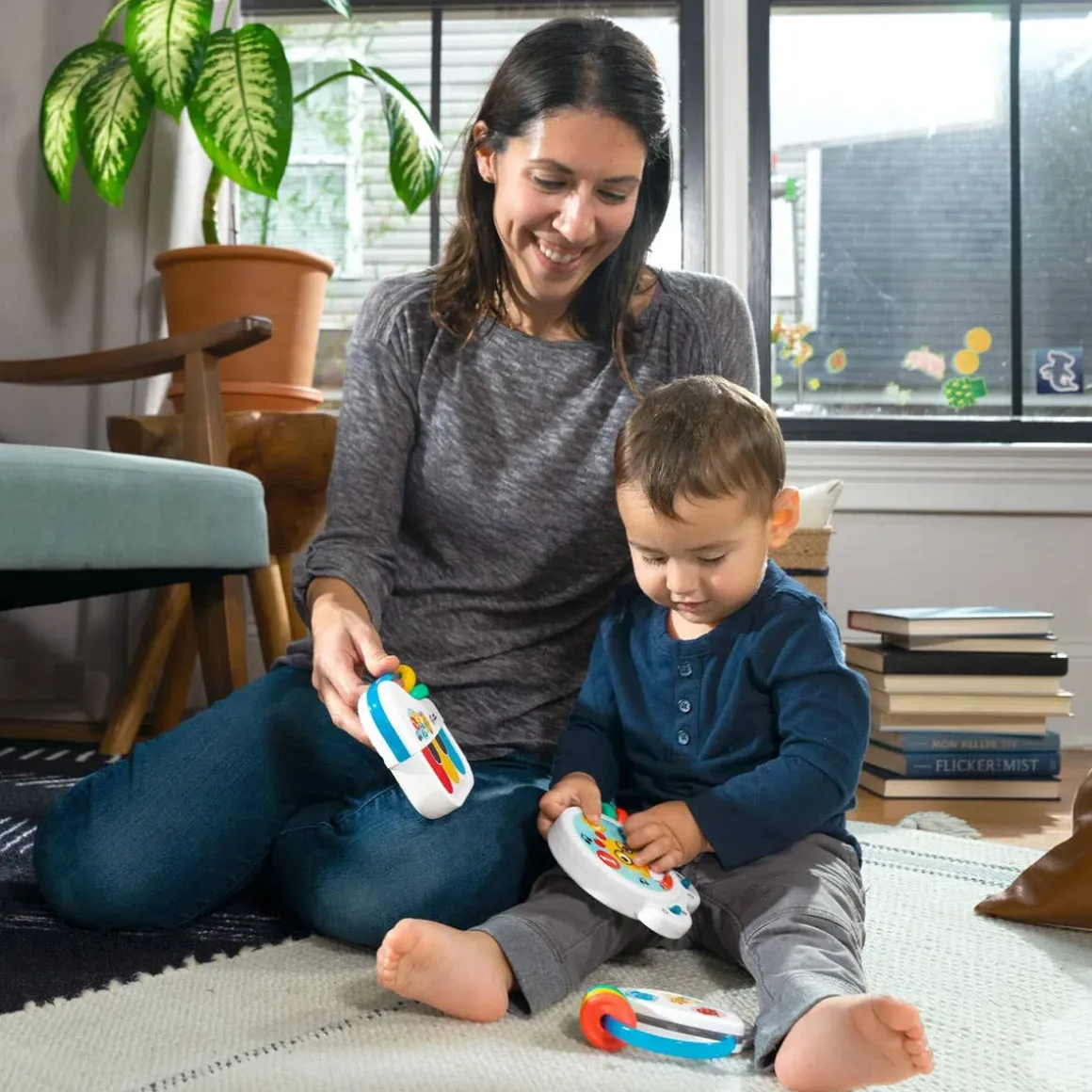 Baby will love to play, tap, and shake their way to musical discoveries with the Baby Einstein Small Symphony 3-Piece Musical Toy Set, a 3-instrument music set to help encourage musical exploration and fine motor skills development with every song. Petit Piano and Tiny Tempo Musical Toy Drum feature short, classical melodies and real instrument sounds, so baby can perform anywhere the musical muse strikes! All instruments include bead chasers to stimulate fine motor skills development. Tiny Tambourine features soft jingles to protect baby’s ears. Piano and drum feature volume control. All instruments are lightweight for portability and ease of use by tiny hands. Wipes clean. Piano and drum require 2 AA batteries per instrument. Tiny Tambourine does not require batteries. Dimensions: 12 inches x 2 inches x 9 inches.