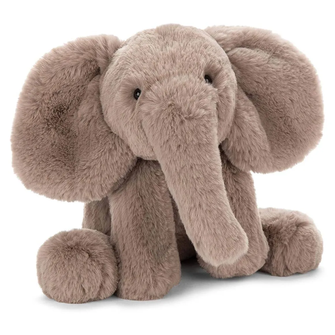 Smudge Elephant loves naptime, and keeps falling asleep on the march! Flop this supersoft silly down to sit on those squishable trumpet paws. With warm grey-brown fur, bright black eyes and great big fancy ears, Smudge Elephant is an adorable dreamer.