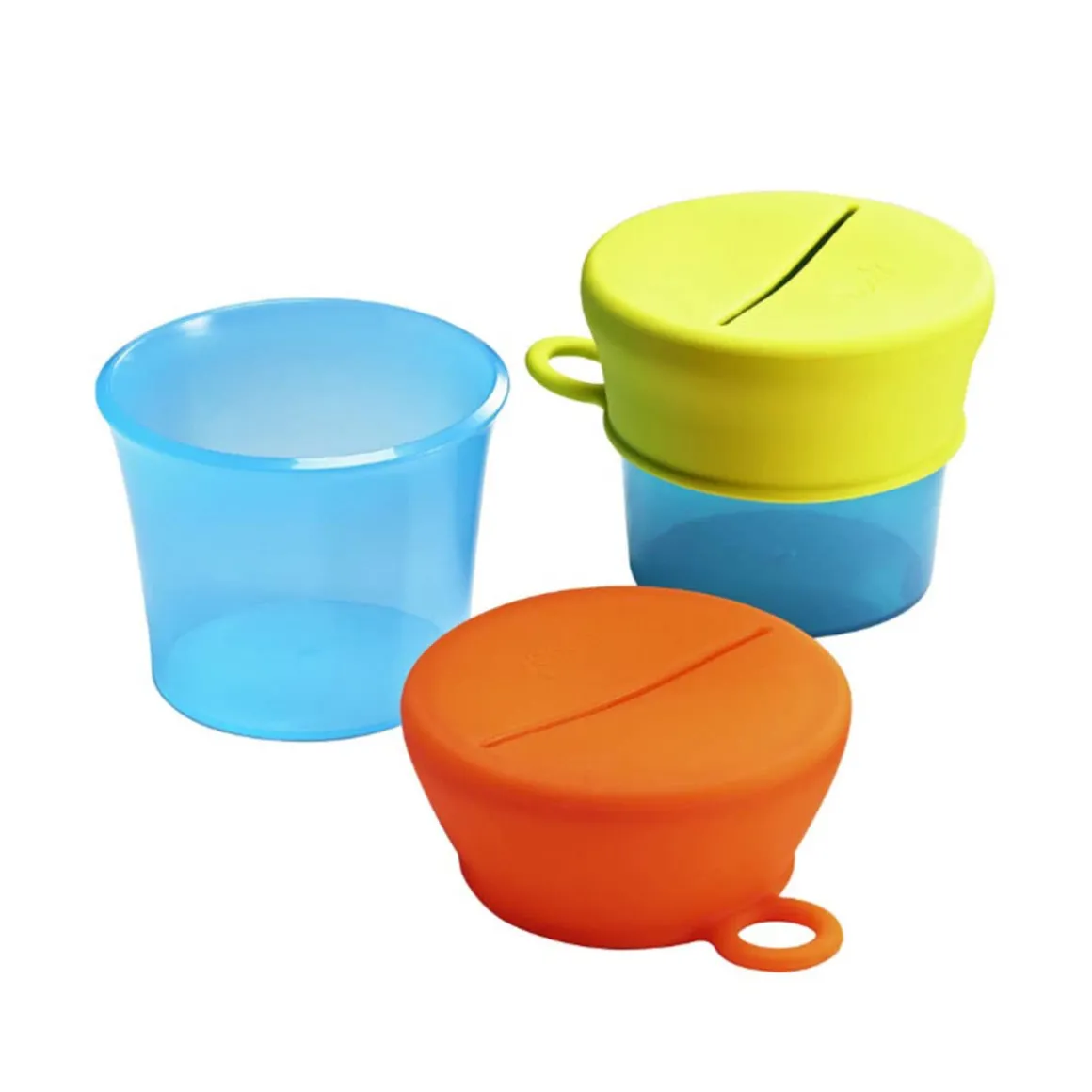 Snacks just might be the best invention ever—until an exuberant toddler flings a humongous container of them skyward. But thanks to Snug Snack it will never rain goldfish again. These handy dandy silicone lids turn cups into spill-proof snack fortresses. Snug Snack comes with two stackable containers and fit cups with a 3.25–4 inch diameter. More munch, less mess.