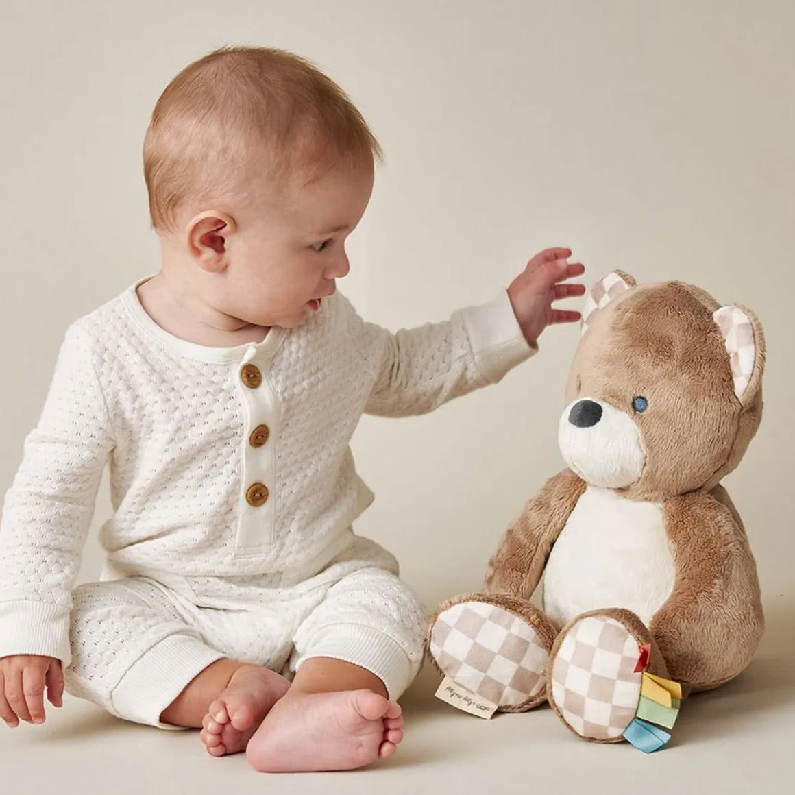 Itzy Ritzy iconic characters of the Snuggleverse brought to life in a soft, cuddly plush. Features multiple soft fabric textures and ribbons for sensory exploration and promotes self-soothing.