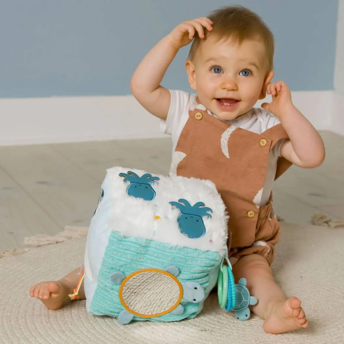 - Several activities: rattles, material games, mirror turtle to discover its reflection, ultra soft materials, embroidered details, 2 teething rings, small turtle hiding in the shell, mobile octopus tentacles.