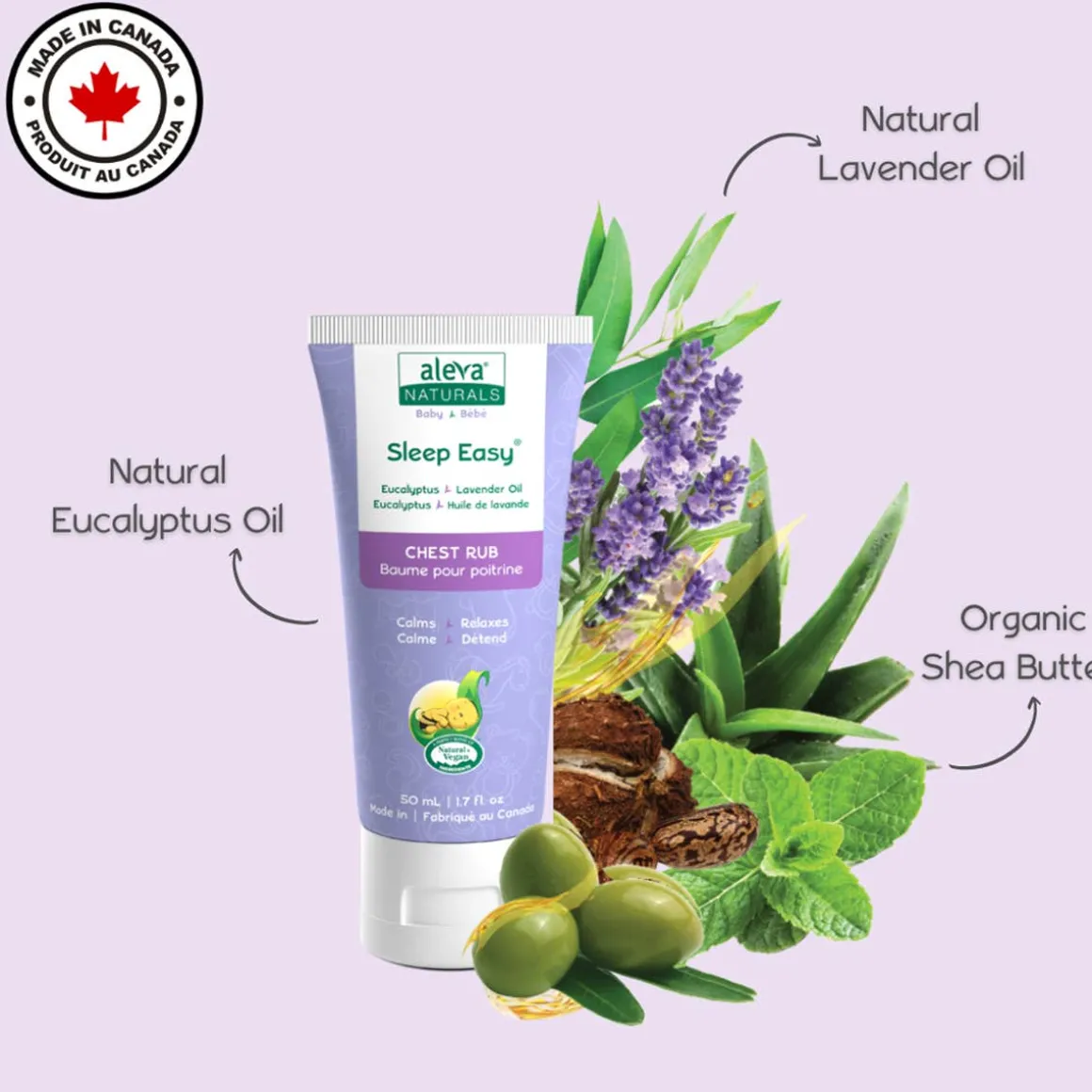 Stuffy noses and sneezing are quite common in newborns. This makes it difficult for them to breathe, and may result in listening to countless hours of crying. Do you find yourself running around for the softest and least intrusive products to help calm your baby? Aleva Naturals® Soothing Comfort Chest Rub is a gentle, smooth and non-greasy formulation that helps to refresh and revitalize. The mild refreshing scents of Eucalyptus and Lavender Oils help to clear baby’s airways almost immediately. All you need to do is apply a small amount to your fingertips and massage onto baby’s chest or back area. Soothing Comfort Chest Rub is blended with Organic Shea Butter, Olive Oil and Natural Almond Oil to help soften and moisturize baby’s skin.