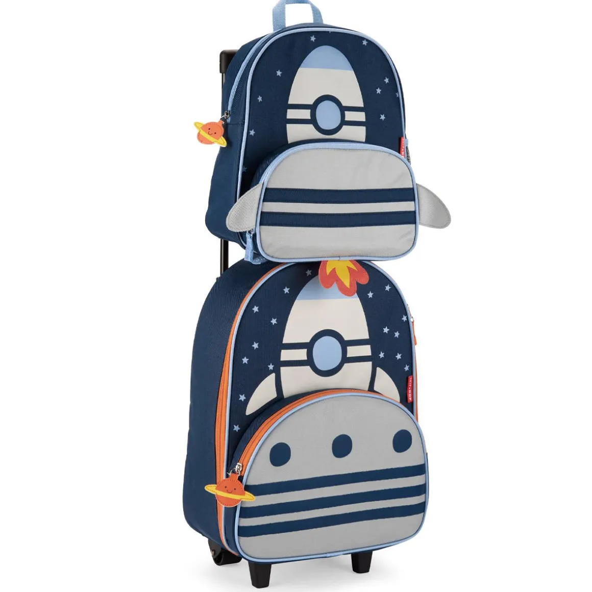 Perfectly sized for carry-ons and overnight trips (Grandma’s here we come!), Skip Hop Spark Style rolling luggage for toddlers is the ultimate travel buddy. Sturdy enough for everyday use, the cool-kid design features a front zip pocket and bottle pocket for easy access, plus a retractable handle for travel made easy.