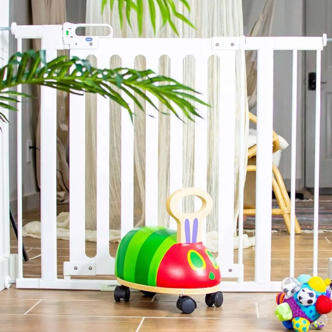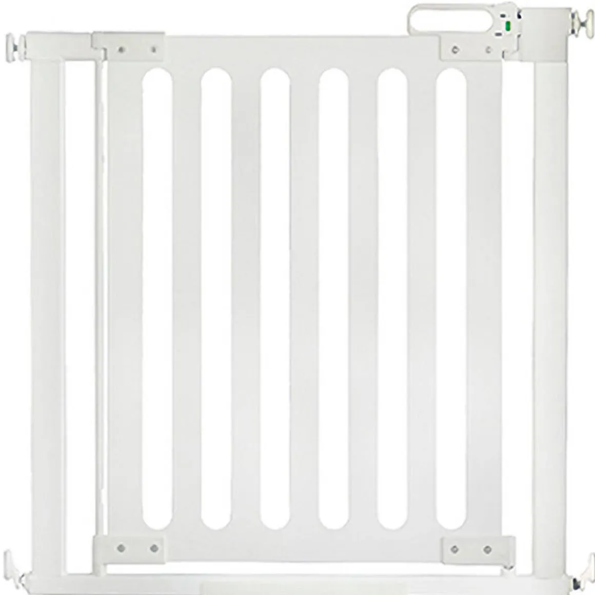 The Spectrum Designer Baby Gate, sculpted from a single piece of furniture grade wood, blends together contemporary design and the Qdos higher standard of safety®. The warm sophisticated design will protect your precious ones and enhance the beauty of your home. Magnetic Level and AccuInstall Indicators® make installation simple and secure; QRF Spindles for mounting over quarter round molding included.