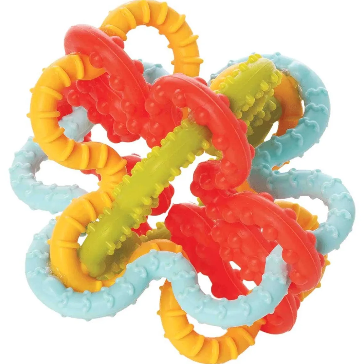 100% silicone, uniquely shaped and ready for sensory playtime! Compact for the on the go, it’s the perfect toy for stashing in the diaper bag. The Squiggle Loops Sensory Toy has all the makings of a textured teether, and brightly colored fidget toy combined. The flexible silicone loops make it esy to grasp while the textured nubs add tactile play value. It’s compact size makes it ideal for travel and easily attaches to baby links. Plus, it’s dishwasher safe for easy cleaning! If you’re in search of a toy that delivers on a sensory experience and textured teething exploration, look no further that the Squiggle Loops Sensory Toy.