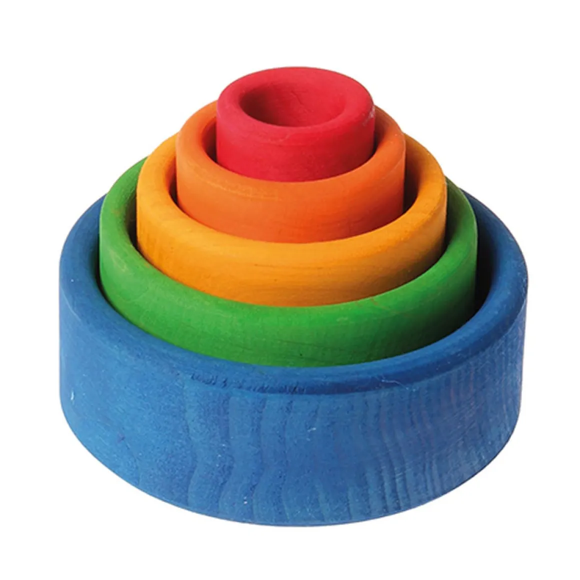 The Set of Bowls is a versatile toy for the children: they can stack and sort the bowls by size and colour, build with them, use it as cooking pot or plate, collect treasures etc.