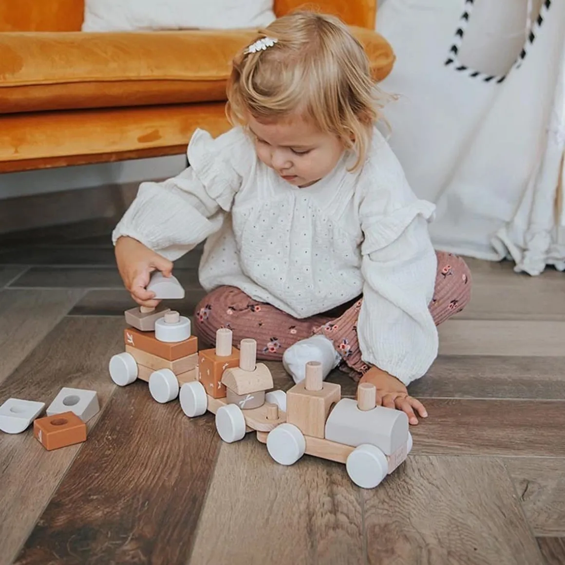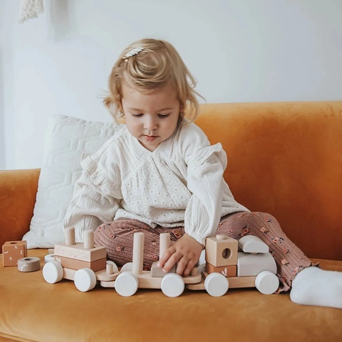 In addition to the many hours of fun, your child will practice his motor skills with this train. Fantasy, imagination and spatial insight are also stimulated. Thanks to its warm, contemporary design, this train is a stylish accent in any room.