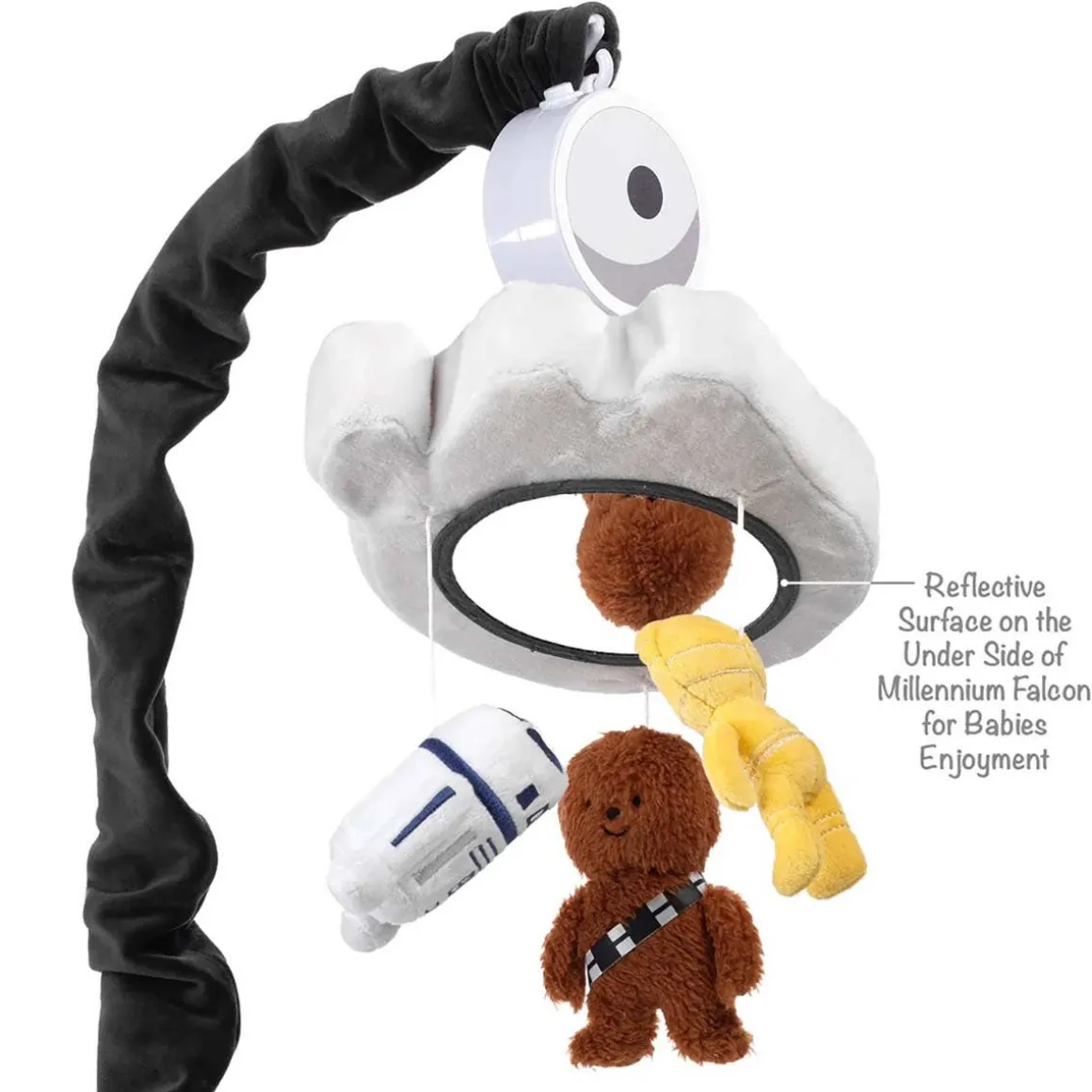 - Mylar mirror included on underside of Falcon so baby can see himself/herself in the middle of the iconic Star Wars characters