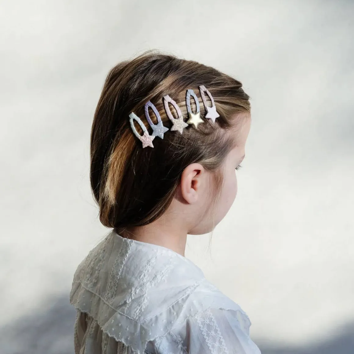 Add some shimmer and sparkle with this pack of mini star clips in a beautifully neutral palette sure to compliment any look!