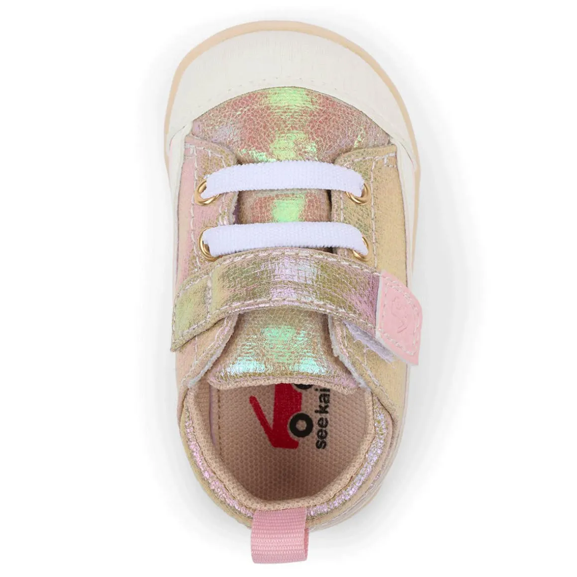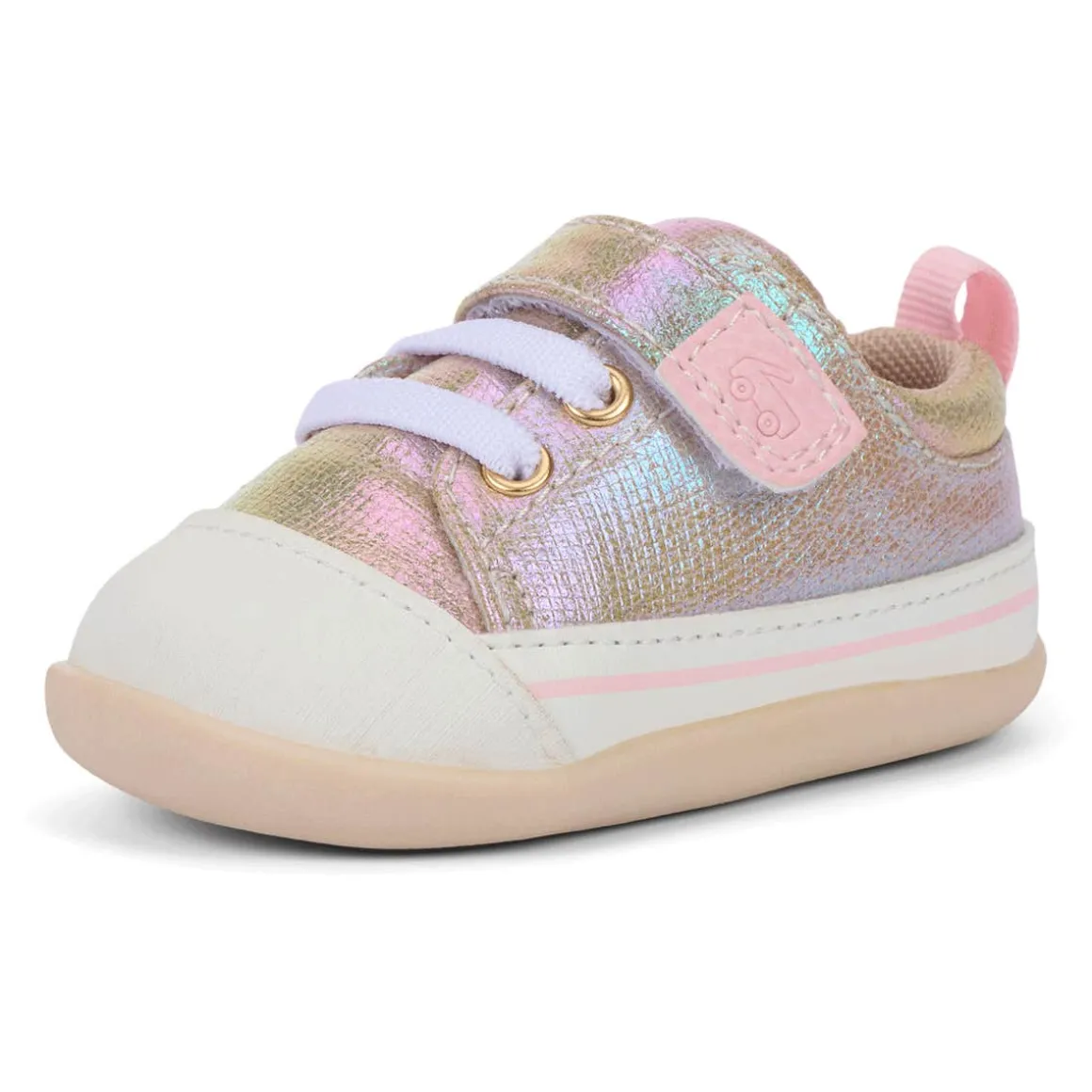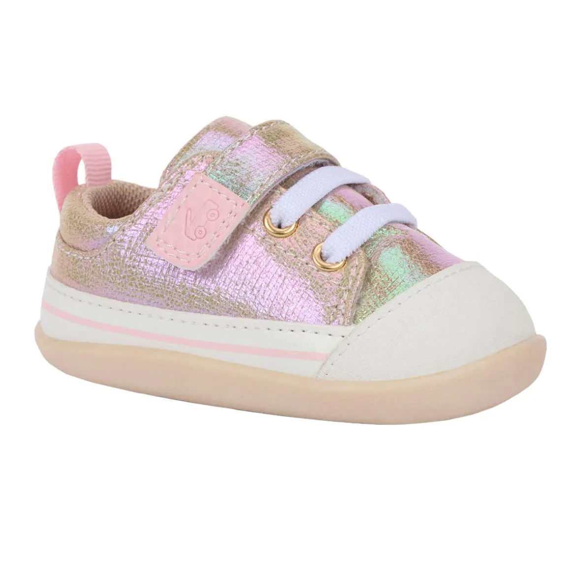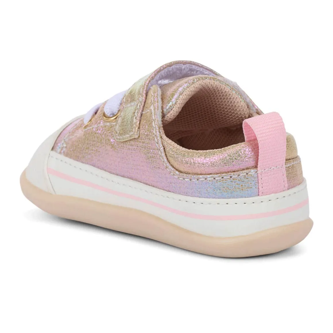 Set the stage for your little one’s first steps with Stevie first walker in Gold Metallic. Gold metallic shimmer textile upper with nubuck-feel detail and rubberized toe cap to protect little toes. Expertly designed to be lightweight, flexible and ultra-breathable, it delivers the perfect blend of support and comfort for your tiny explorer.
