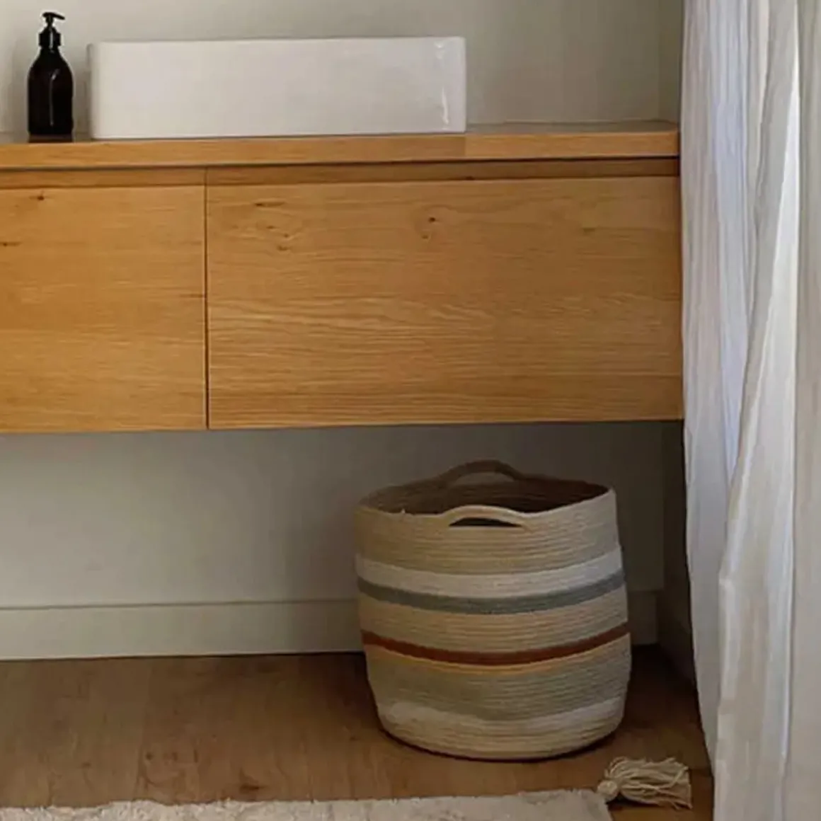 The perfect match for all the Reversible Twin rugs, in all their matching colors. Its practical handles allow for easy moving around the house, to take toys, store clothes, or to organize the stuffed animals. And why not? Use it as a shopping basket too!