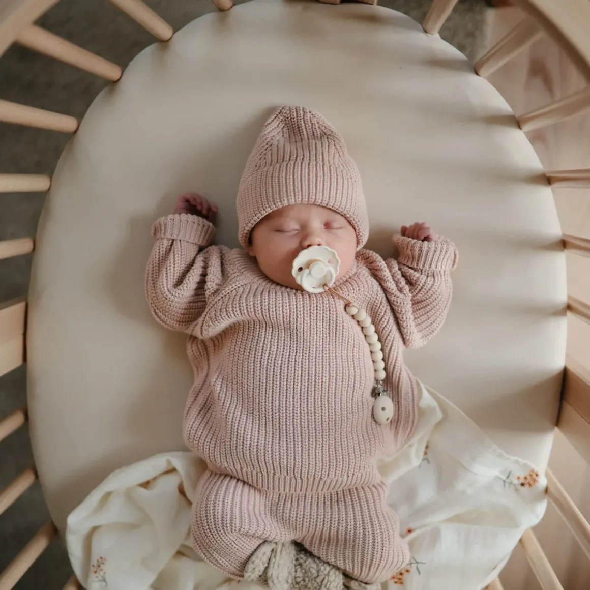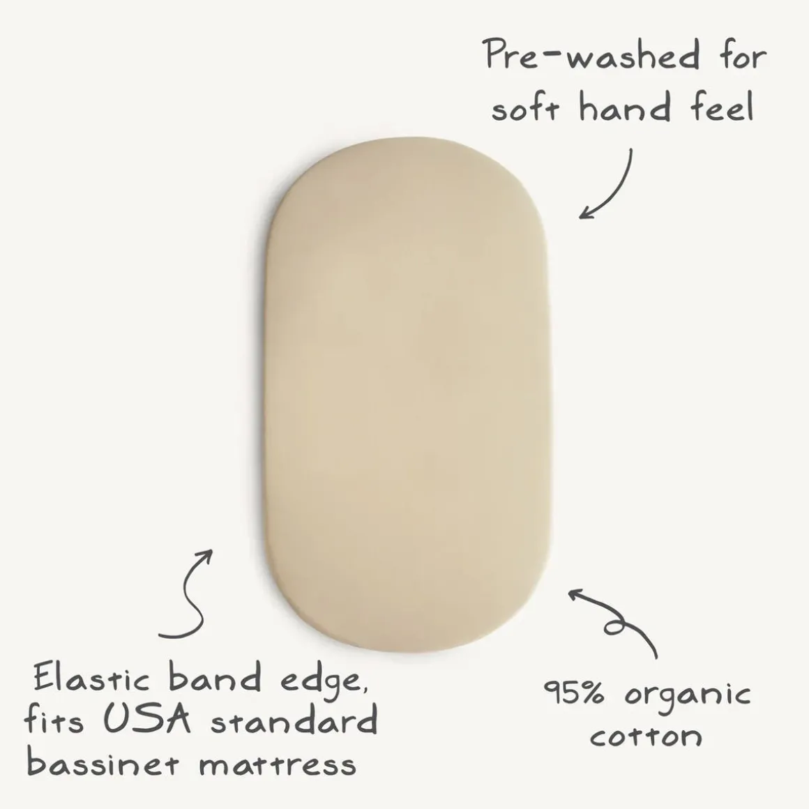 - Stretchy bassinet sheet material: 95% Organic Cotton, 5% Elastane