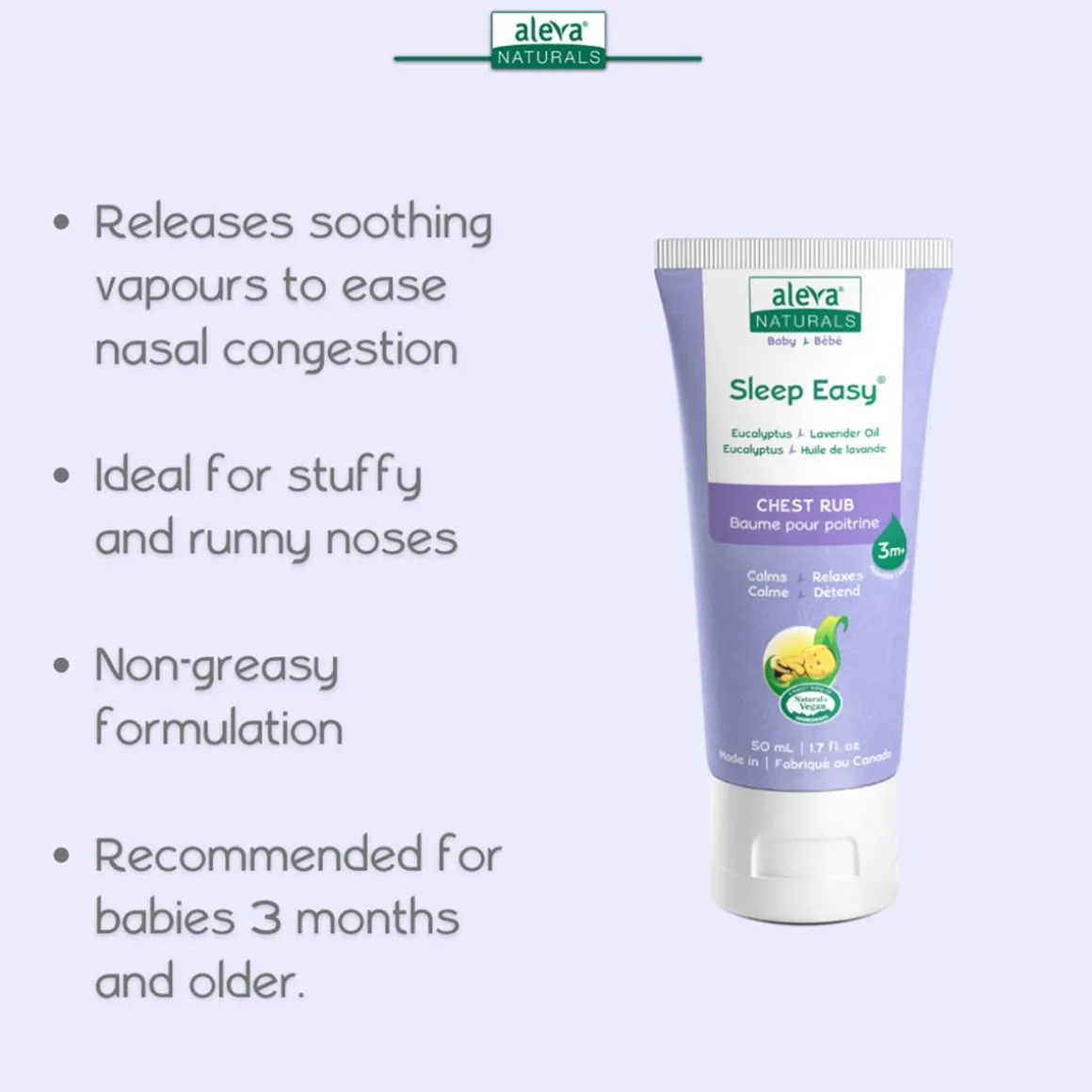 Is a gentle, smooth and non-greasy formulation that helps to refresh and revitalize.The mild refreshing scents of Eucalyptus and Lavender Oils help to clear baby’s airways almost immediately.