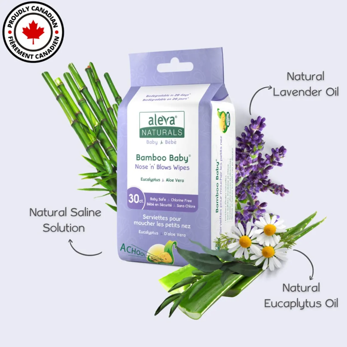 Runny/stuffy noses and sneezing are common for newborns, and can occur while out and about, or even during the long harsh winters. If you are looking for something your baby won’t resist, This Stuffy Nose Kit is the perfect solution! Aleva Naturals Nose n Blows Wipes will make your baby feel comfortable and at ease. These ultra-soft, unbleached and unique wipes, enriched with natural saline solution, gently clean, clear and moisturize little stuffy noses.