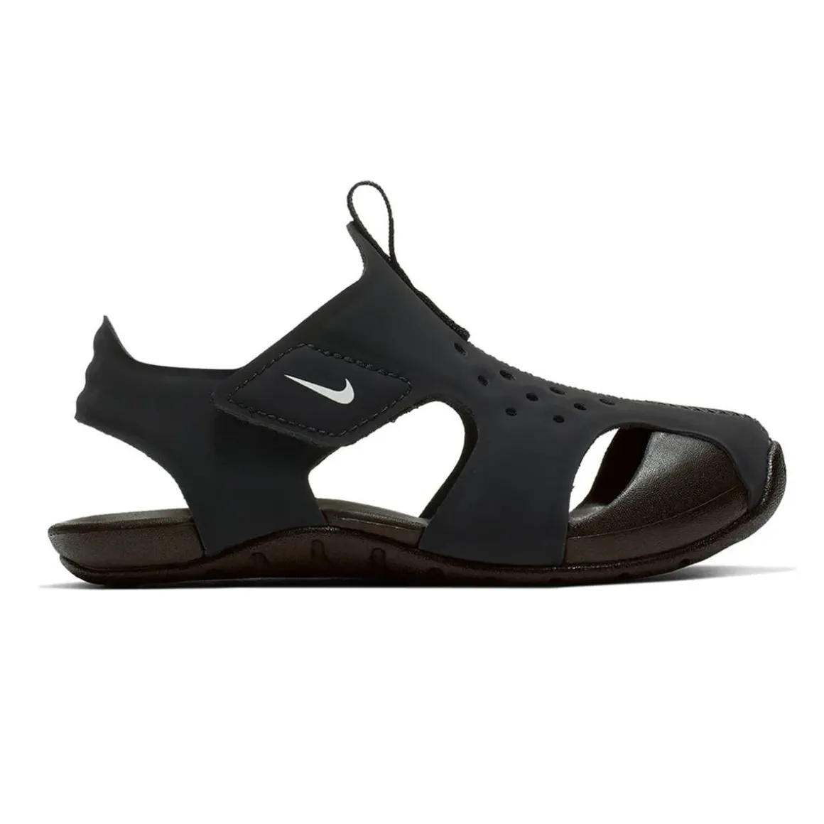 Nike Sunray Protect 2 Sandals deliver total toe coverage and outsole traction that’s perfect for outdoor play. Hook-and-loop straps make on and off easy, while openings on top promote airflow when little feet get hot.