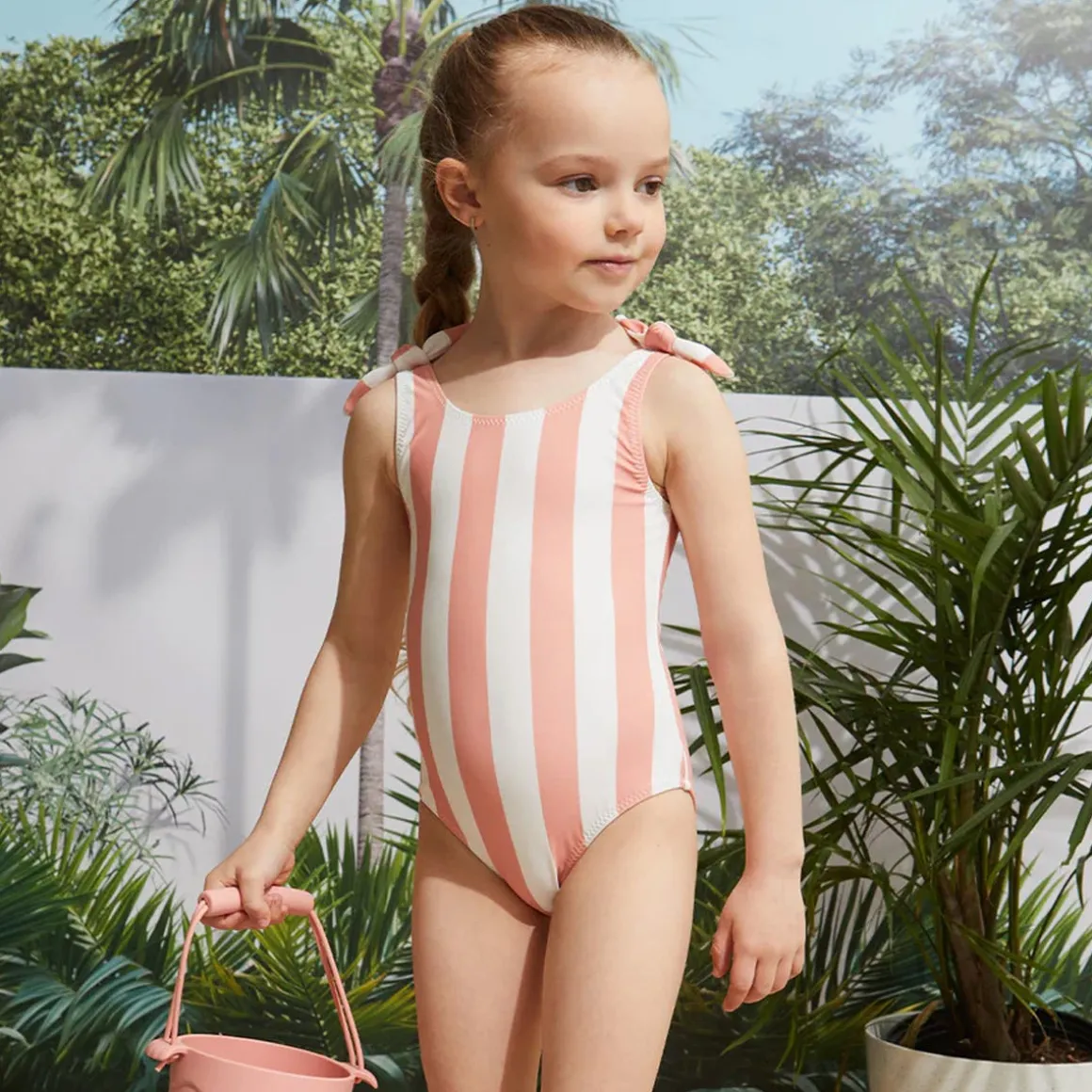This effortlessly chic swimsuit with knotted detailing and a timeless design will be her new favorite. Made from recycled nylon and elastane, the bodysuit has great flexibility, so she’s free to try handstands in the pool or jump through the waves at the beach. With built-in UPF50+ sun protection the bodysuit is perfect for vacation.