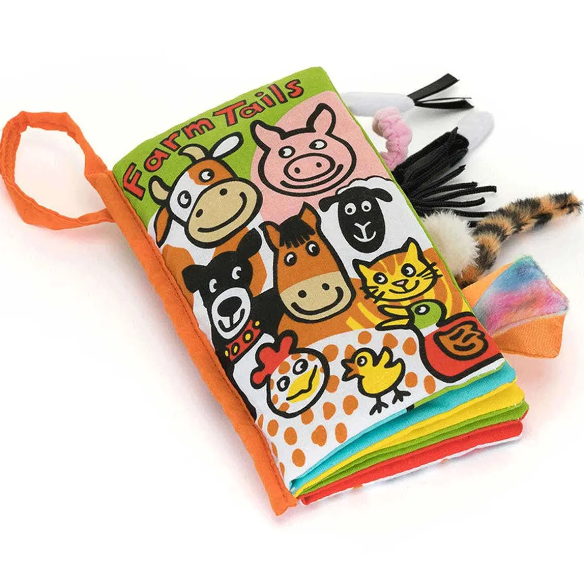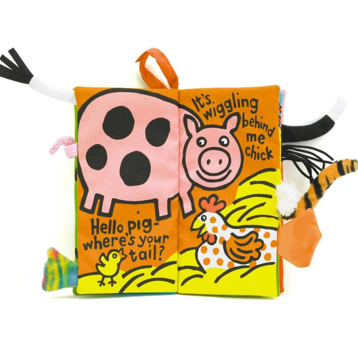 Furry dog tails, tasselly cow tails, feathers, fluff and curly pig tails! All of the farmyard friends are in the Farm Tails Book, ready to show off their colors and shapes. Tots will love learning which tail goes with which bottom in this soft, squishy book full of mix-ups and muddles!