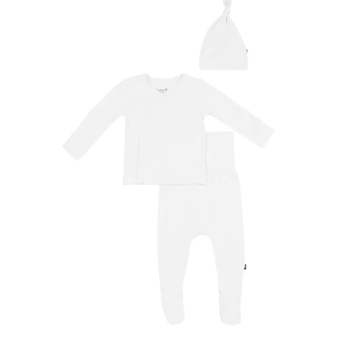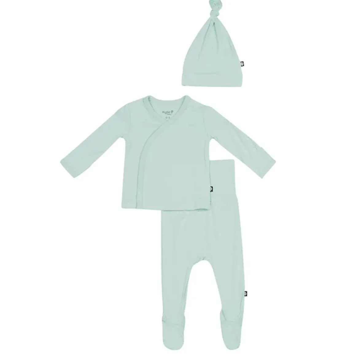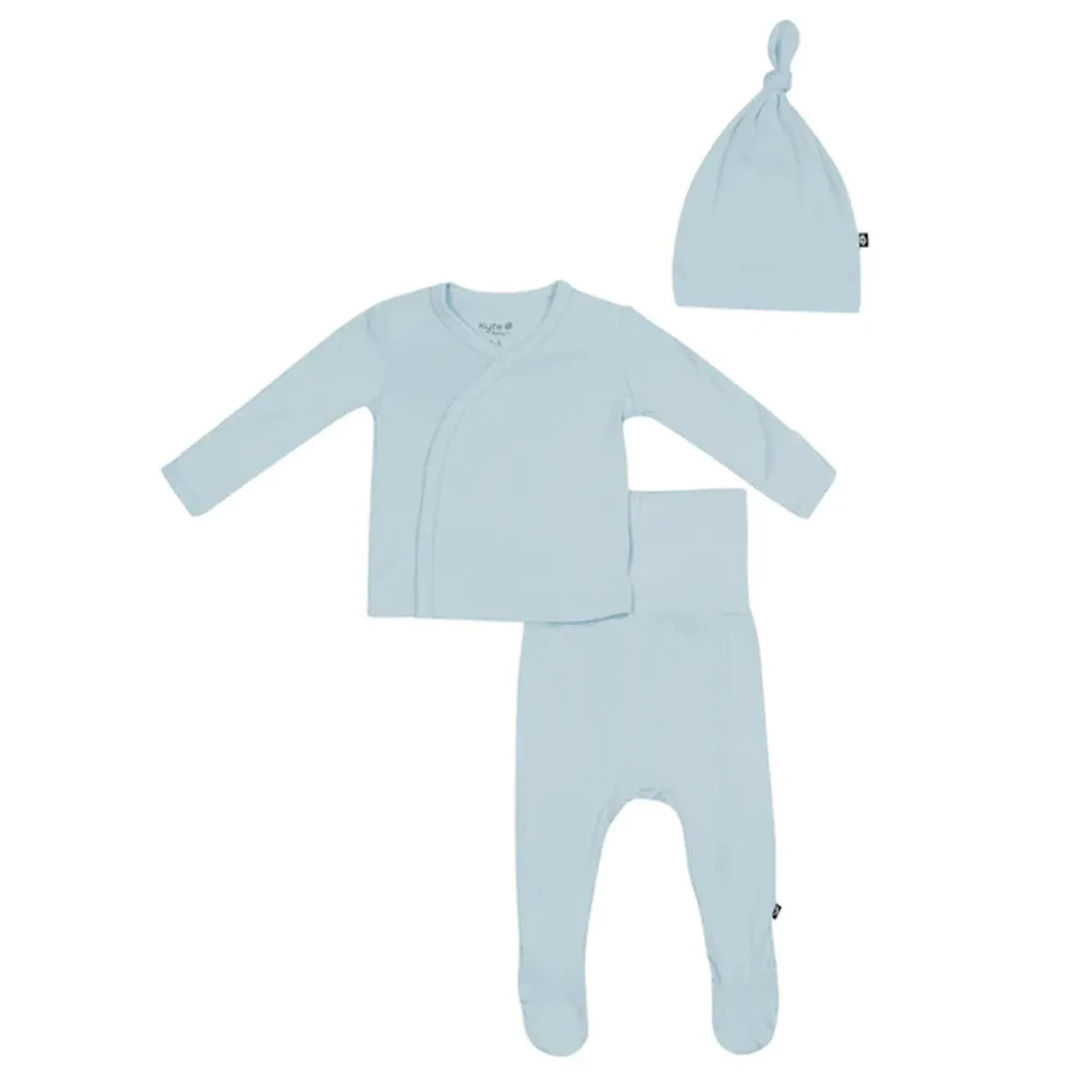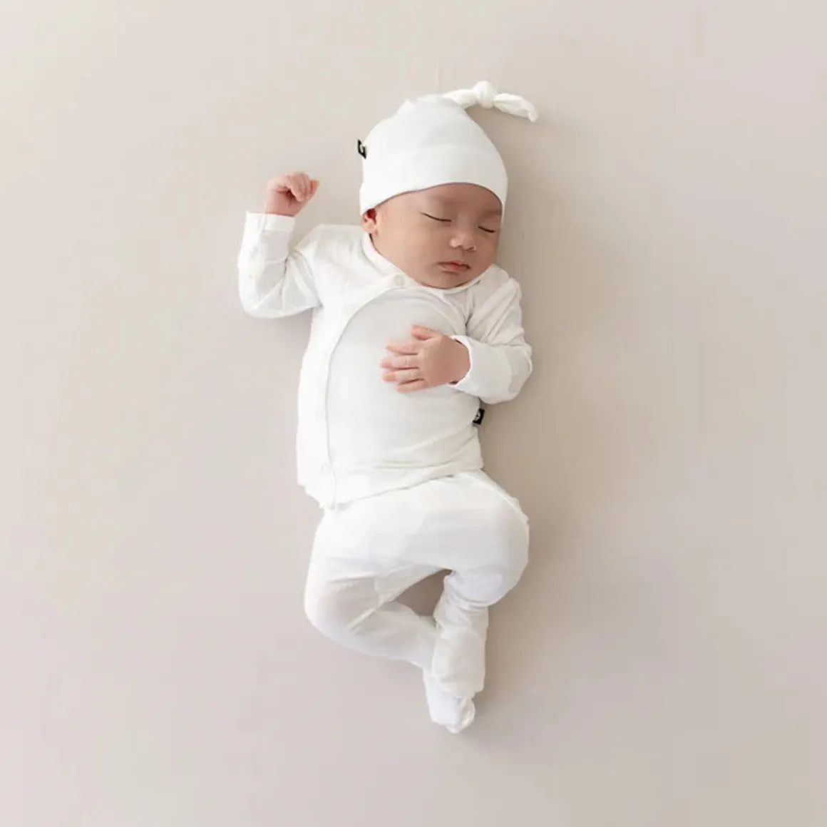 Dress your little one in style and comfort for their very first outing with a newborn going home outfit from Kyte Baby. This precious three-piece set includes a kimono-style wrap top, footed pants, and a knotted beanie. Diaper changes are a breeze in separates, and a comfort-fit waistband is nonirritating on baby’s umbilical cord stump. Hypoallergenic, breathable rayon made from bamboo is buttery soft and ultra gentle on baby’s fresh, delicate skin.