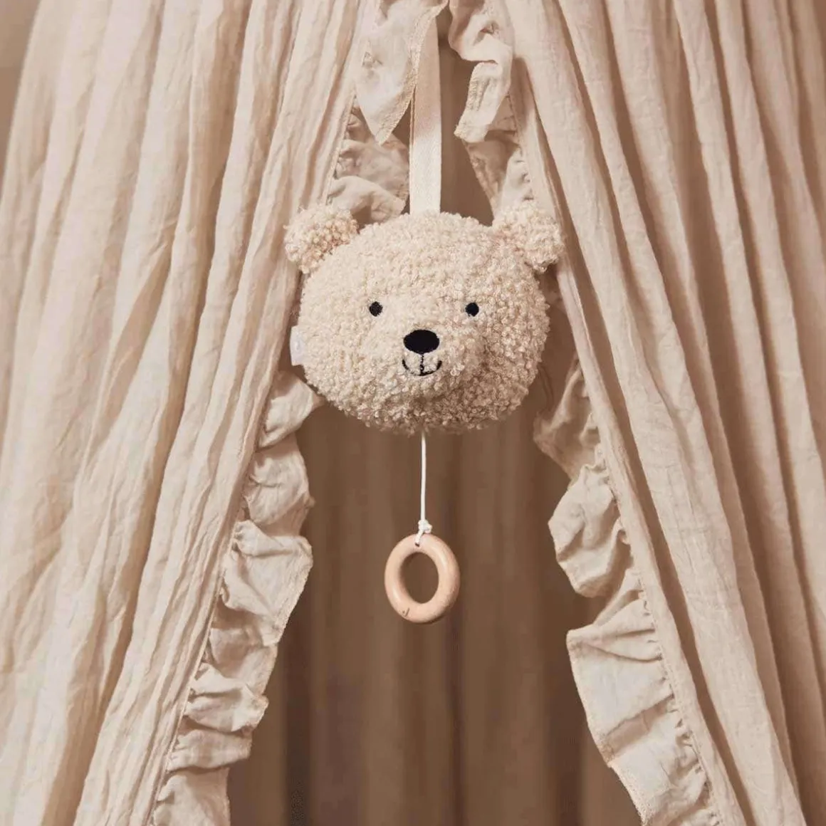 This sweet little bear will sing for your little one! This cute musical hanger plays the song ‘’you are my sunshine‘’ when you pull the string. This can have a soothing effect on your baby. You match this musical hanger well with the Teddy Bear cuddly toy or dummy cloth, for example.