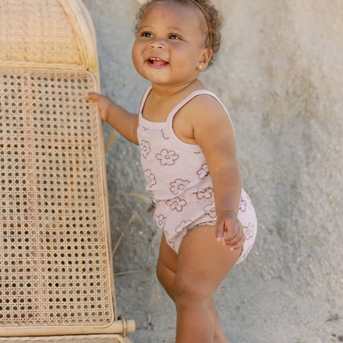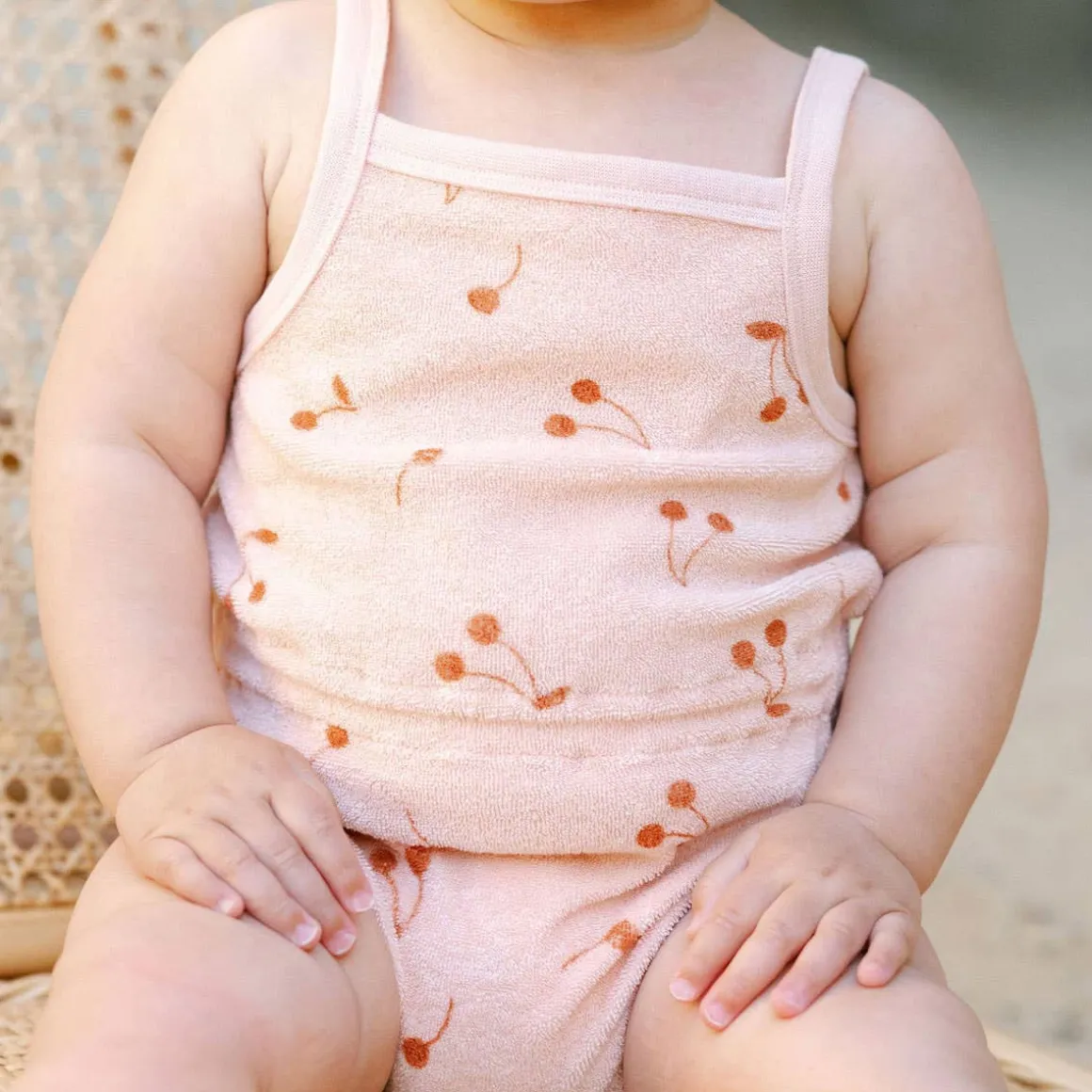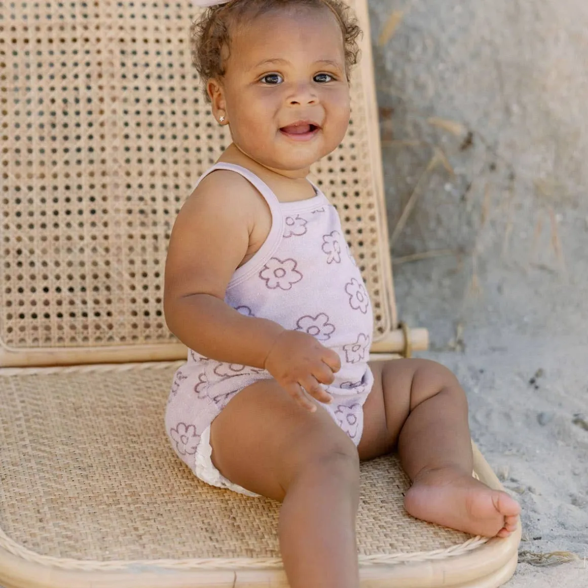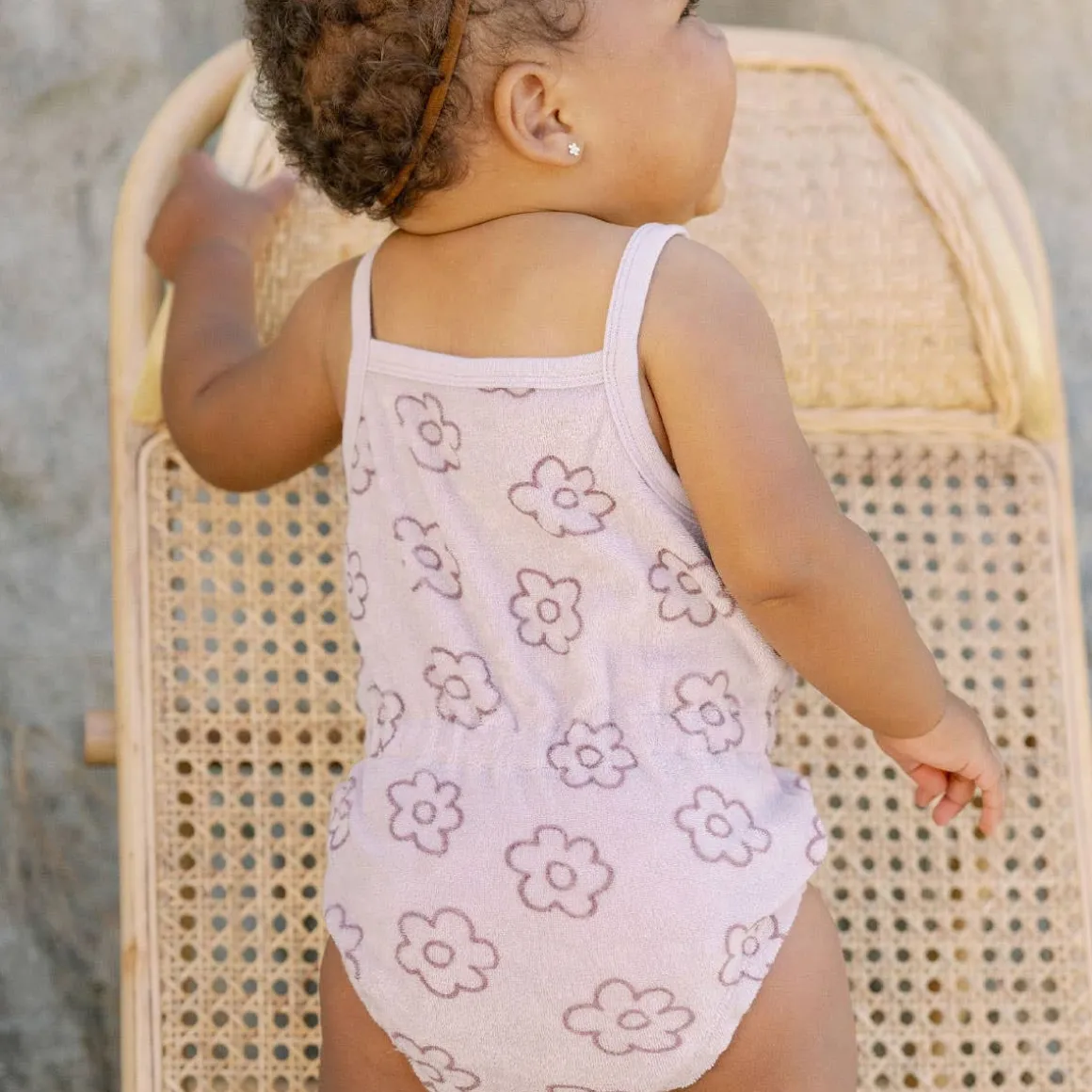Terry Cinched Romper is a sure summer go-to! Featuring spaghetti straps, a cinched waist, and bottom snaps for easy changes.