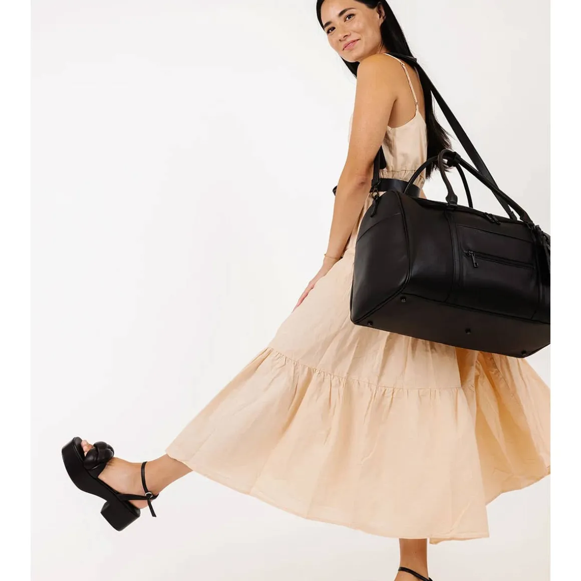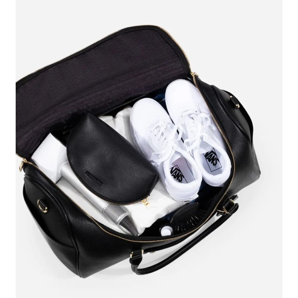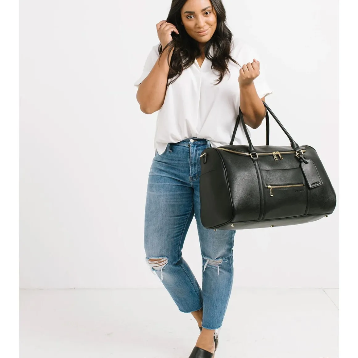 The Weekender Bag doubles as the perfect travel bag for quick getaways and the perfect hospital bag for expecting mamas! The roomy interior features the custom logo-print nylon lining and can fit clothing, pajamas, shoes, slippers, and more. The bag has a variety of interior pockets to keep all of your accessories organized, from cosmetics and skin care to accessories like sunglasses, socks, scarves, etc.