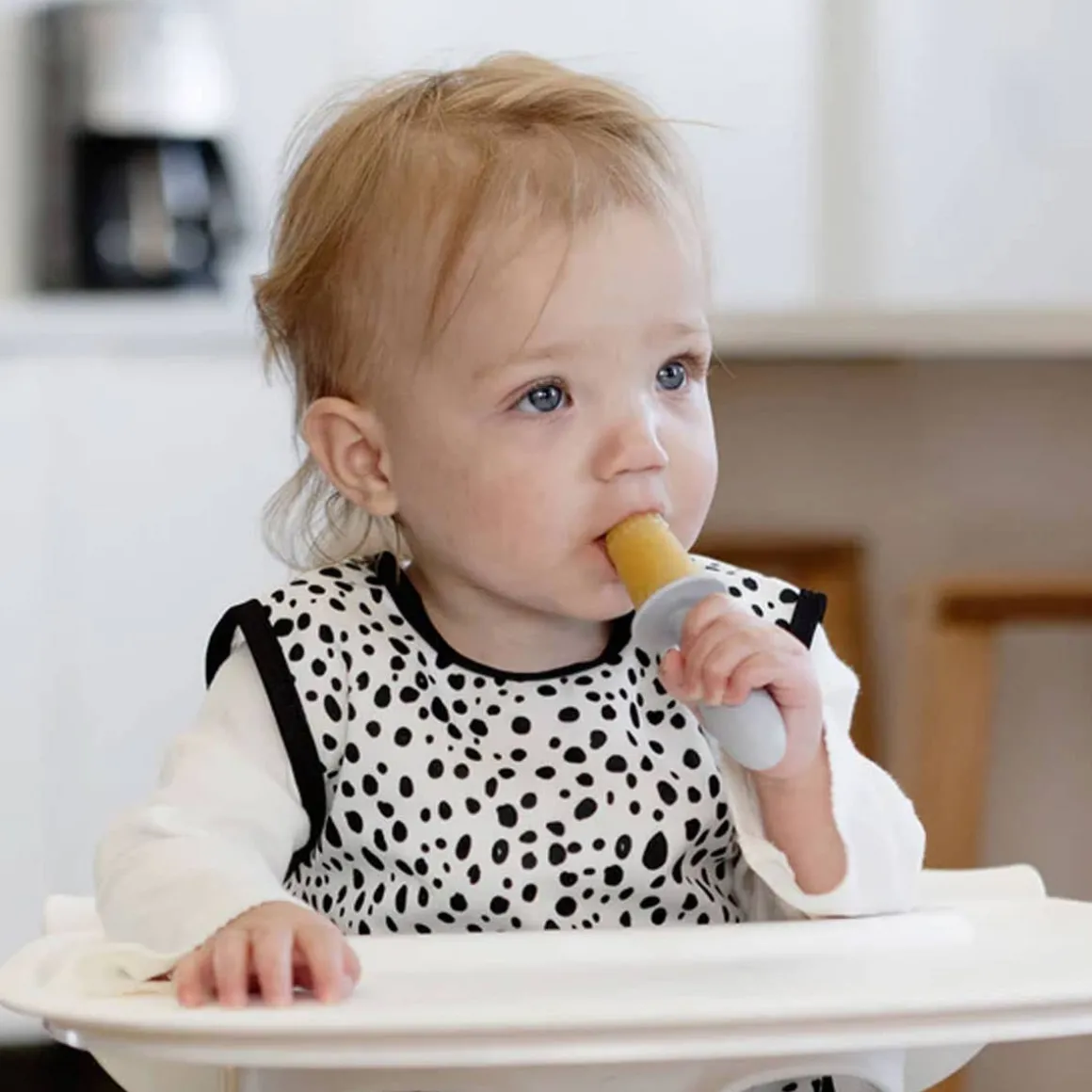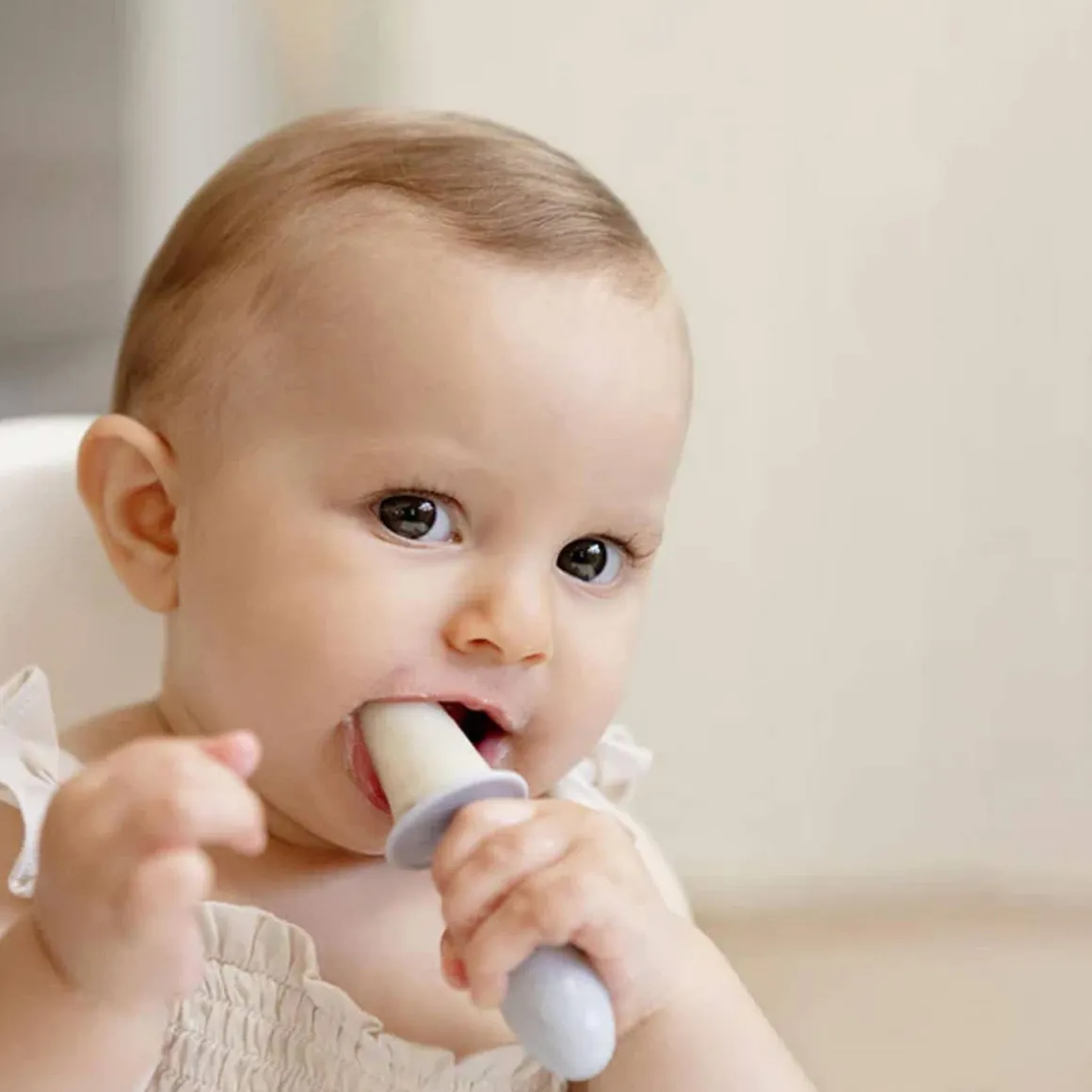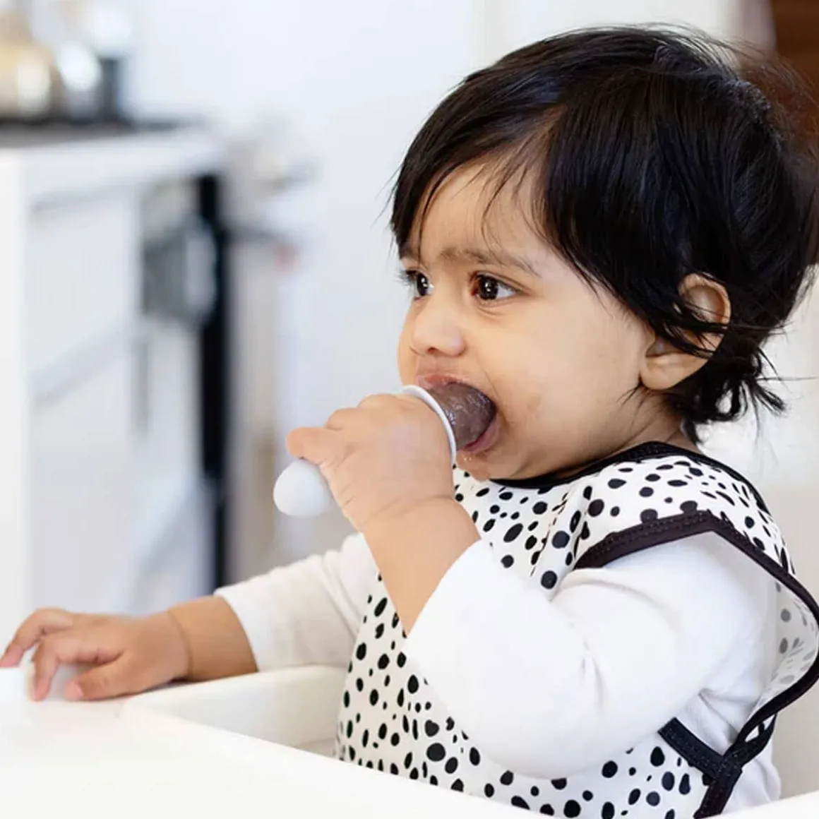 Finally, a popsicle mold made for infants! Ezpz Tiny Pops are portion-sized at ½ oz and have a short, fat, round handle for baby’s grasp. To use, simply freeze breast milk, formula or a smoothie for 4+ hours and (voila!) your baby has nourishment and a treat for their senses!