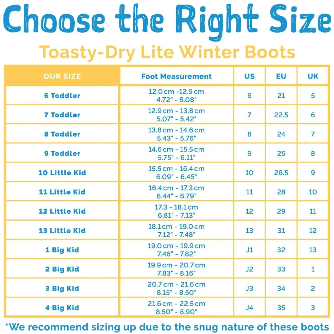 Jan & Jul Toasty-Dry Lite Winter Boots are about 30% lighter than most winter boots. That’s enough to make any kiddo jump for joy! Whether you’re out on a rainy hike or running errands, these boots will quickly become your little one’s ‘go-to’s. Fully waterproof and machine washable for effortless clean-up. Thoughtfully designed by moms and tested by kids in rainy Vancouver, Canada.