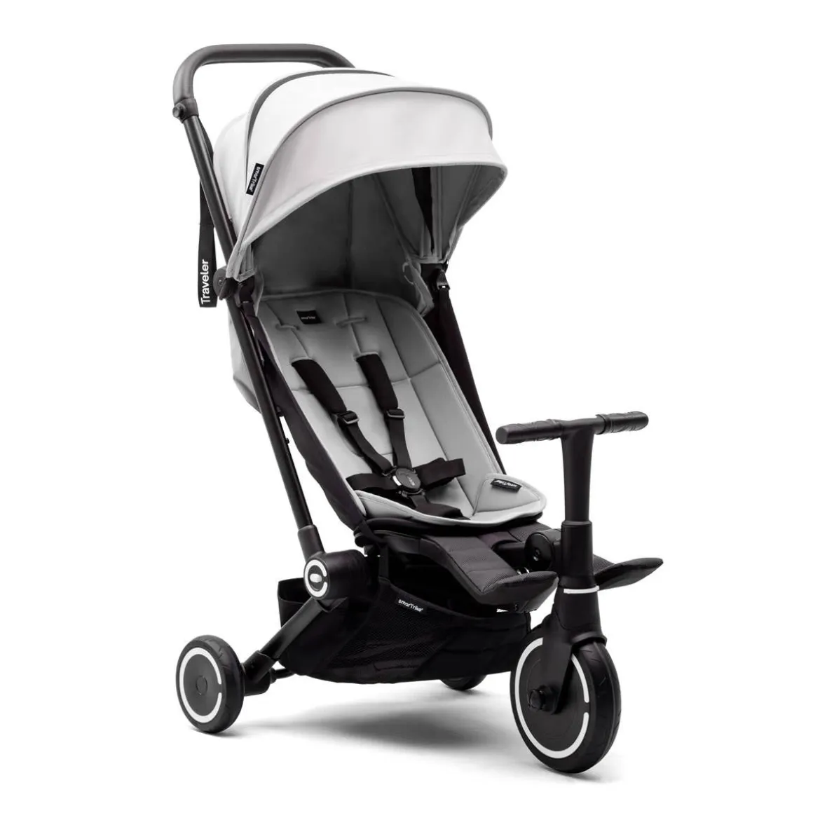 The Traveler transforms from stroller to trike in 4 stages, giving your child more independence with each. It’s built with features that make it comfortable, safe, and fun for you and your little one on every ride.