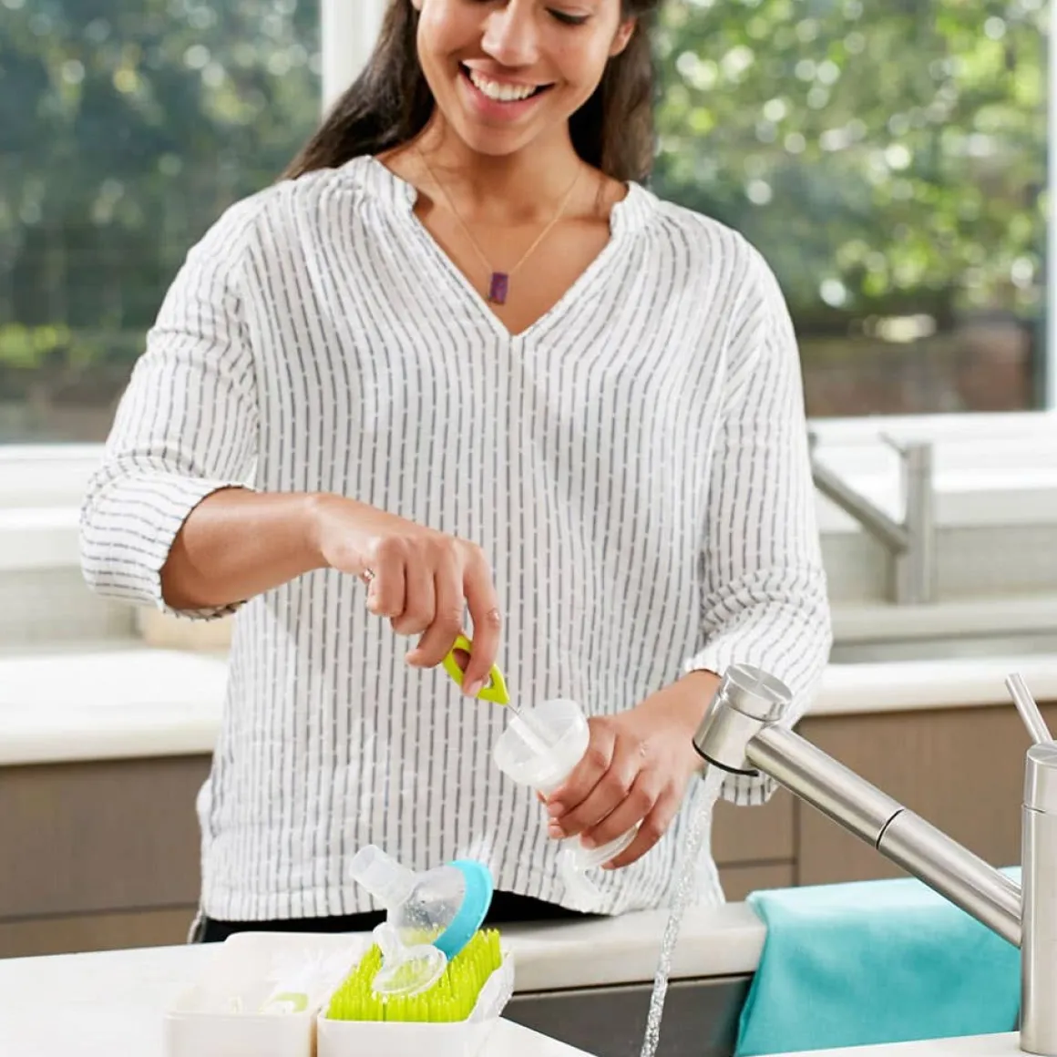 - Compact drying rack and bottle brushes for use on-the-go