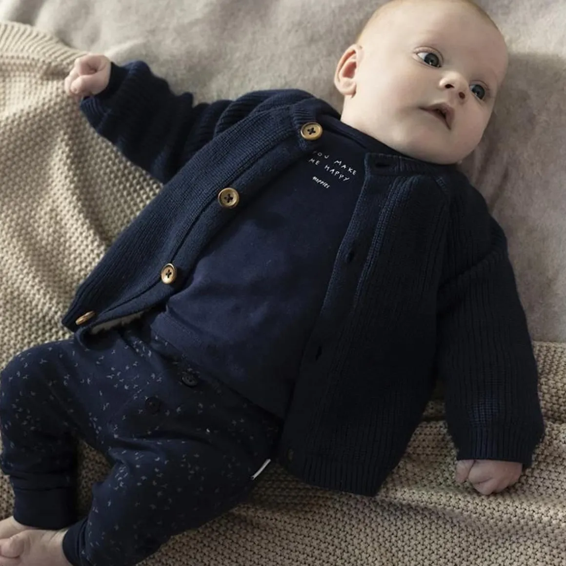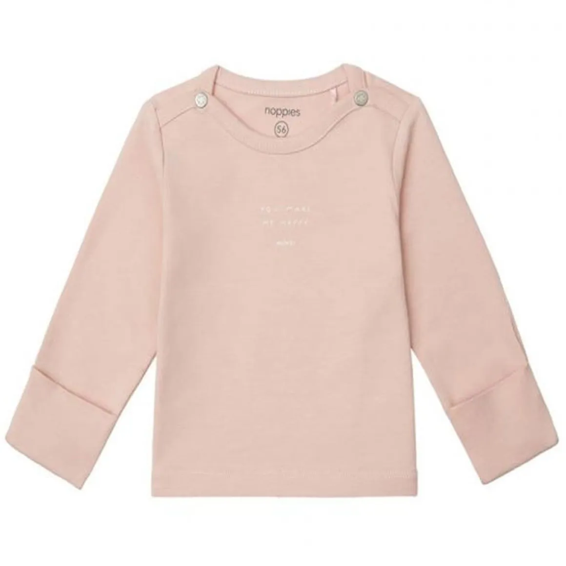 Cute unisex shirt from the Noppies Baby collection. The shirt Neisse has a some cute words on the chest. Thanks to the press-studs in the neckline, dressing and changing is a lot easier. The stretch in the fabric makes it really comfortable. The sleeve cuffs fold over and turn into gloves. That makes it warm and cosy for your baby and stops them from scratching themselves. A comforting thought. The shirt carries the soft feel label, which means it is extra soft for baby’s delicate skin. Pair with one of the matching items to create a complete outfit.