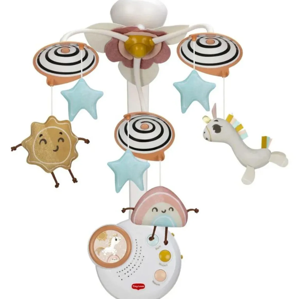 Let your little darling revel in a world of shimmering stardust and enjoy the enchanting melodies and soothing lights together. Add a touch of magic to your baby’s room with the Tiny Love Classic Mobile – Unicorn Wonderlands and support their development in a loving and creative way!