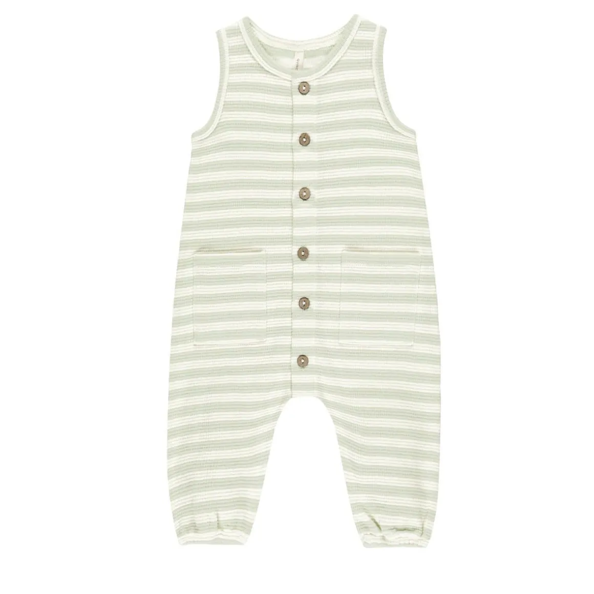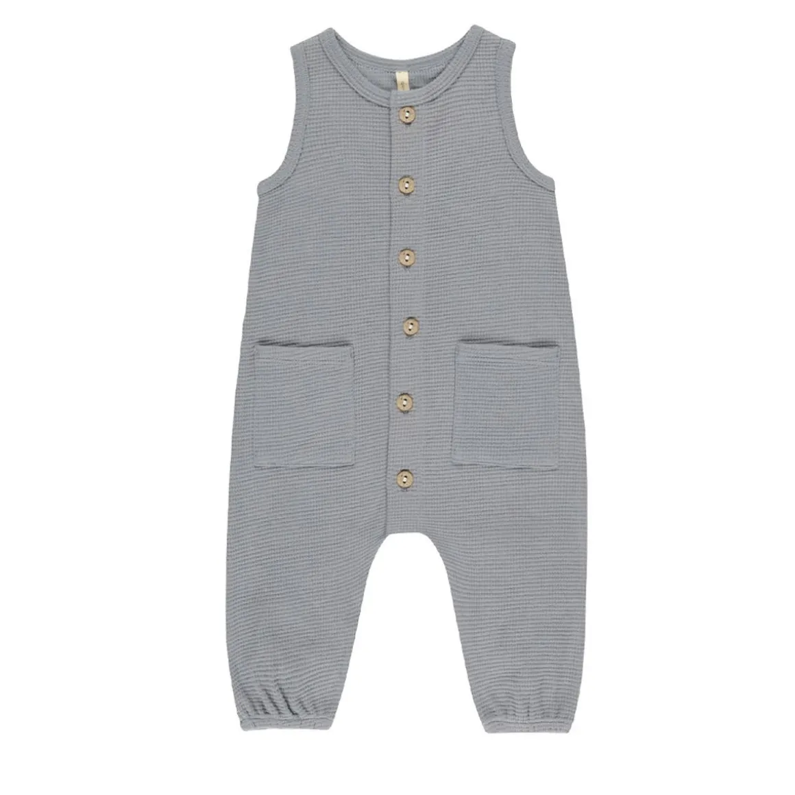 This pocketed sleeveless jumpsuit is perfect for your little ones’ transitional wardrobe. Designed with coconut buttons down the front for easy changing.