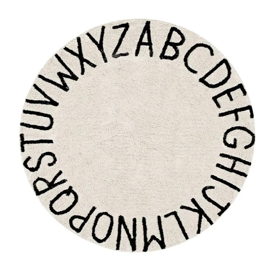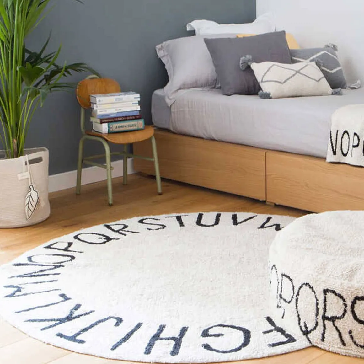 A rug for kids to play and learn their ABCs! This all-time favorite design never goes out of style. Little ones can trace the letters with their fingers to learn the alphabet. Its neutral colorway and adaptable round shape make it a timeless piece. It is practical for improvising play areas in any corner of the house.