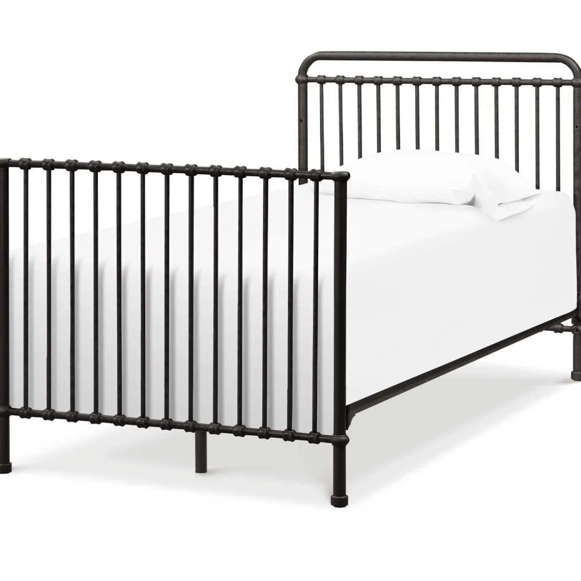 The best-selling Winston Crib has been reimagined for small spaces – perfect for nursery nooks, shared bedrooms, and grandma’s guest room. It’s a smart alternative to a bassinet that will last longer and convert to a toddler bed, daybed and twin bed as your little one grows. The Winston 4-in-1 Convertible Mini Crib features a portable design with removeable casters, premium steel and traditional metal casting at the joints to emulate vintage American style.
