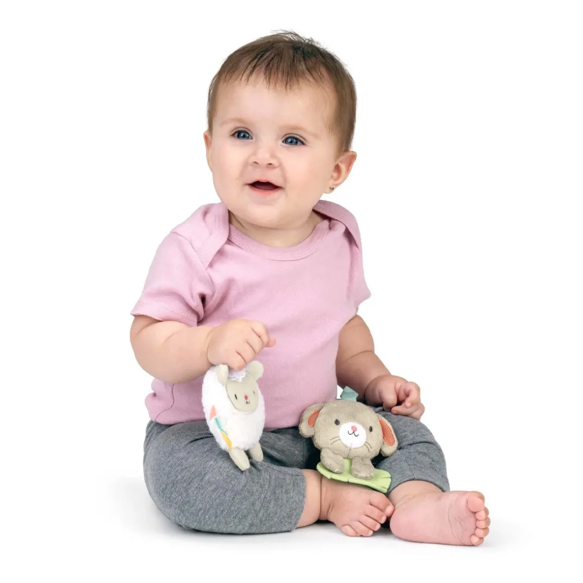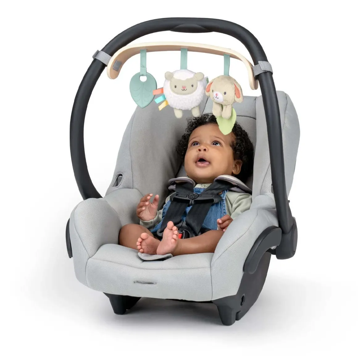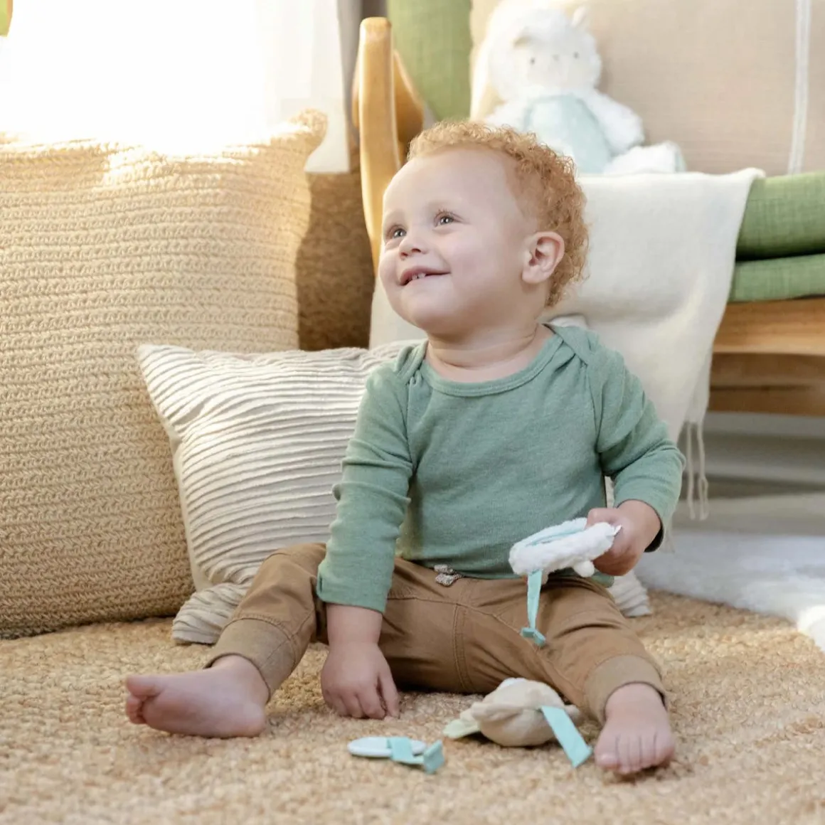 Help baby stay entertained while they develop new skills. Montessori-inspired toy encourages baby to engage and soothe themselves without technology. Includes 3 removable activity toys: Silicone leaf toy, plush Sheppy™ lamb mirror with sensory tags, & soft Sylvi™ bunny toy with textured leaf?. Hanging toys help baby stretch and develop fine motor skills as they explore new textures. Portable bar keeps baby entertained on-the-go and fits most carriers. The entertaining toys are also removable and fun to play anywhere. Beautiful toybar made with wood from a sustainable forest?. An essential toy for any parents looking to help baby grow, learn, and play every day.