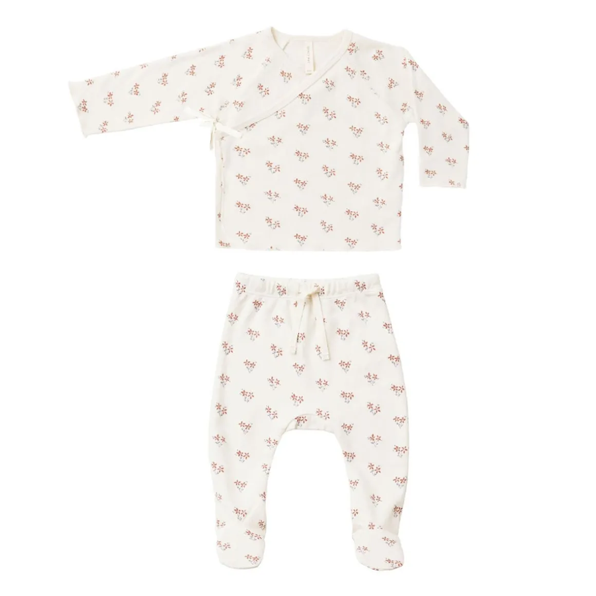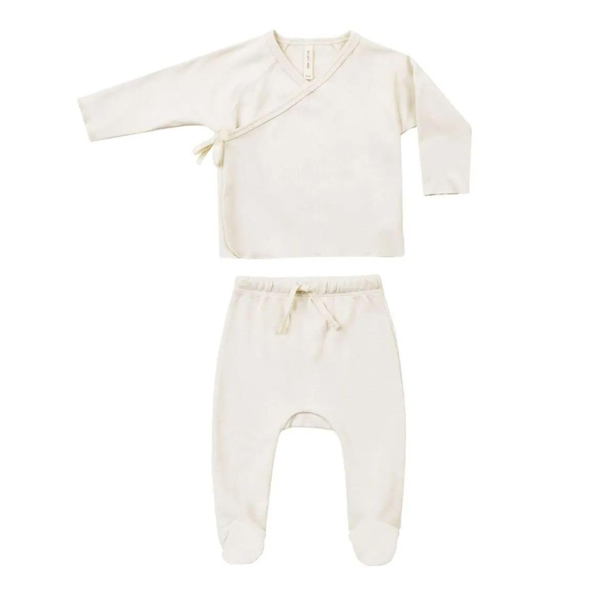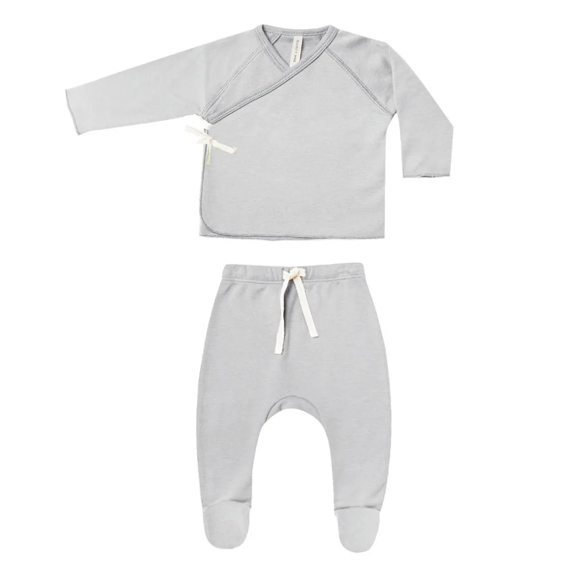 Quincy Mae long sleeve wrap top + footed pant set is made out of Quincy organic brushed jersey that ties on the outside for a comfortable fit, with matching footed drawstring pants.
