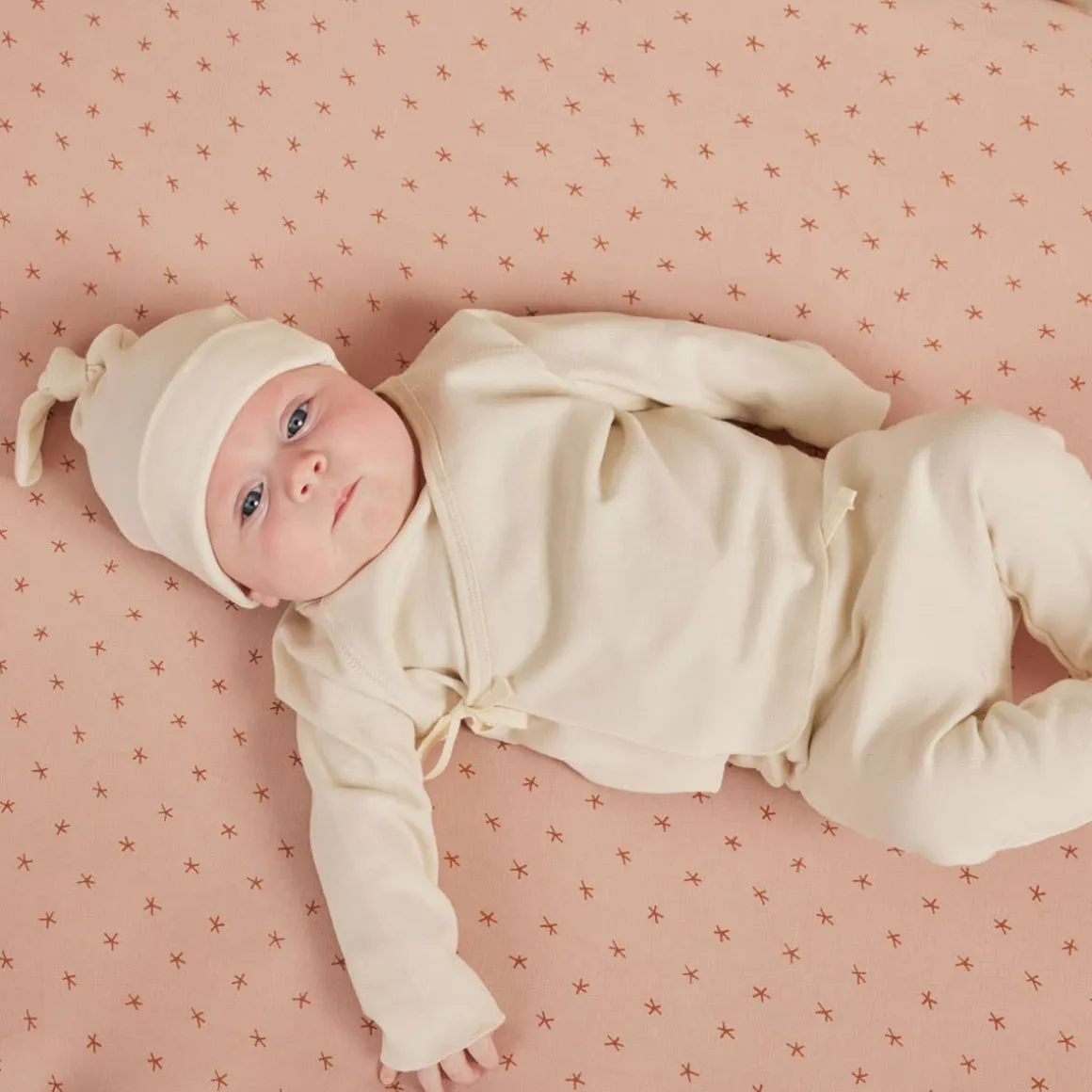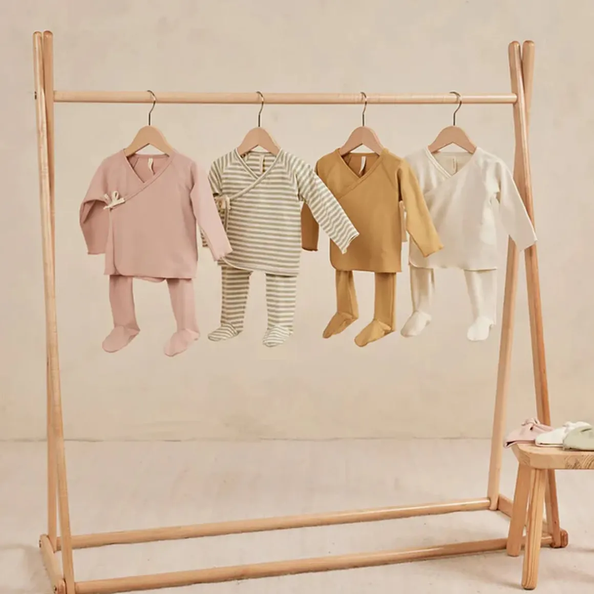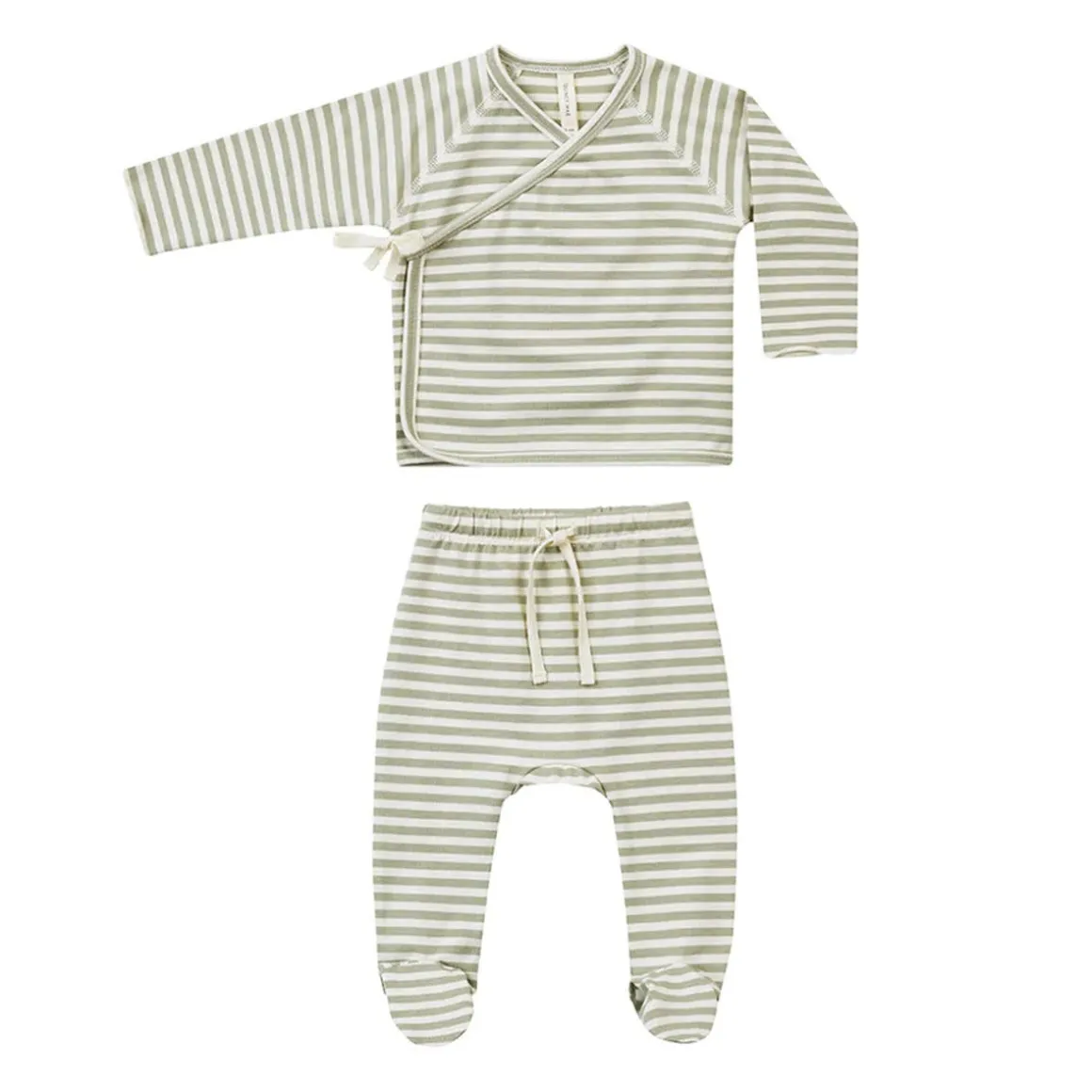 Quincy Mae long sleeve wrap top + footed pant set is made out of Quincy organic brushed jersey that ties on the outside for a comfortable fit, with matching footed drawstring pants.