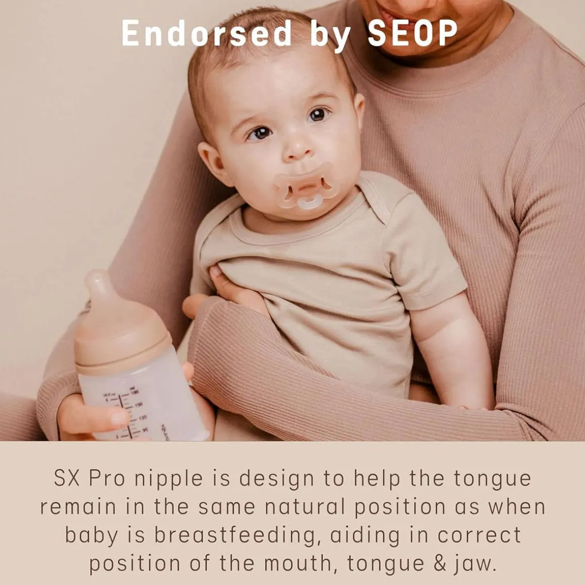 - With revolutionary SX Pro™ Physiological nipple, designed to help the tongue remain in the same natural position as when the baby is breast-feeding, aiding in correct positioning of the mouth, tongue & jaw